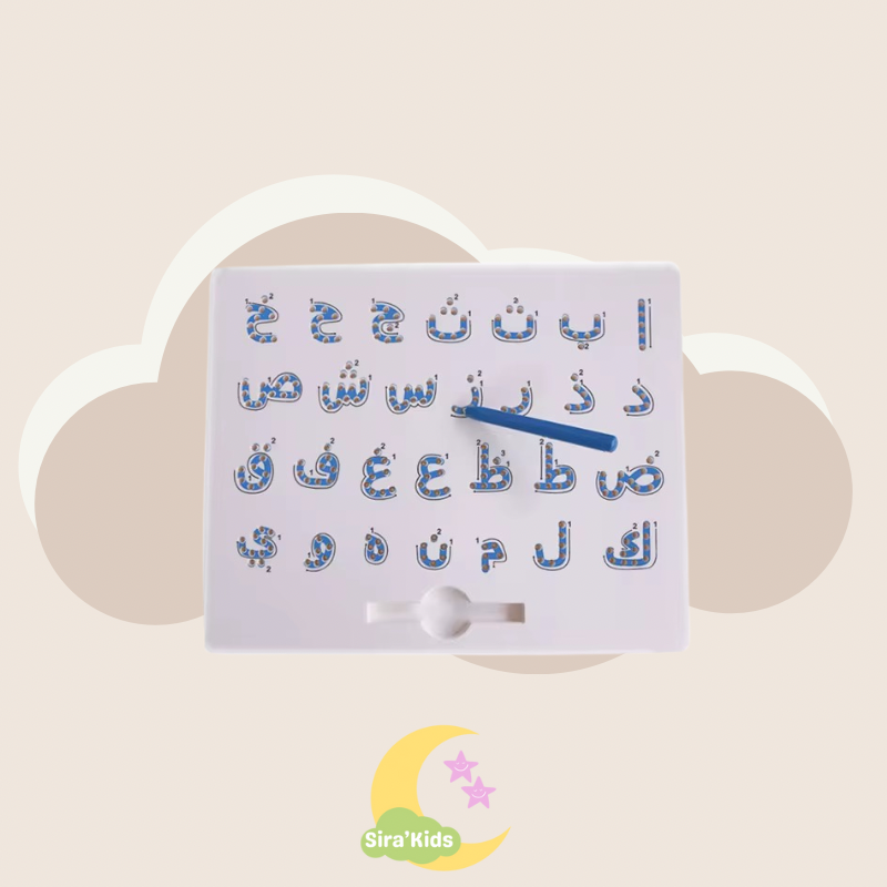 Planche rigide pour apprendre à tracer les lettres arabes avec flèches de guidage. Parfaite pour les débutants.
