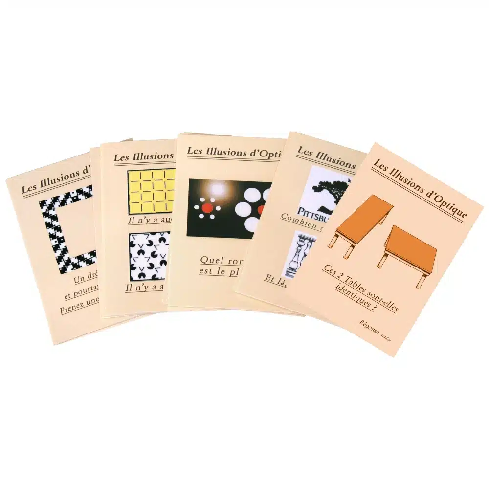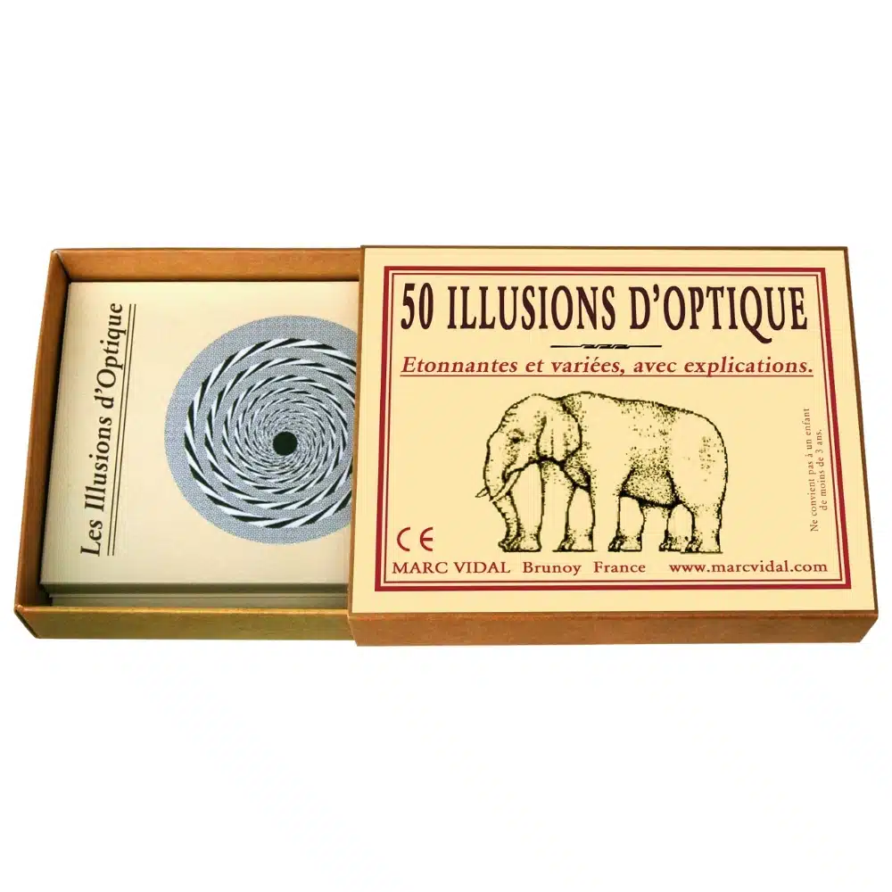 50 illusions d’optique, pour tromper votre cerveau et celui de vos amis ou de votre famille, de la marque française Marc Vidal, fabrication française. Utilisation à partir de 6 ans.