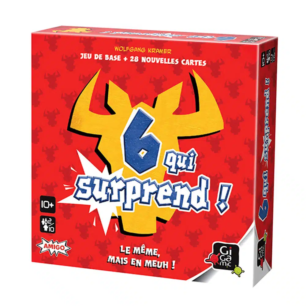6 qui surprend ! Le jeu de cartes d’ambiance à succès, de la marque Gigamic, à partir de 10 ans, de 2 à 10 joueurs, 45 min de jeu.