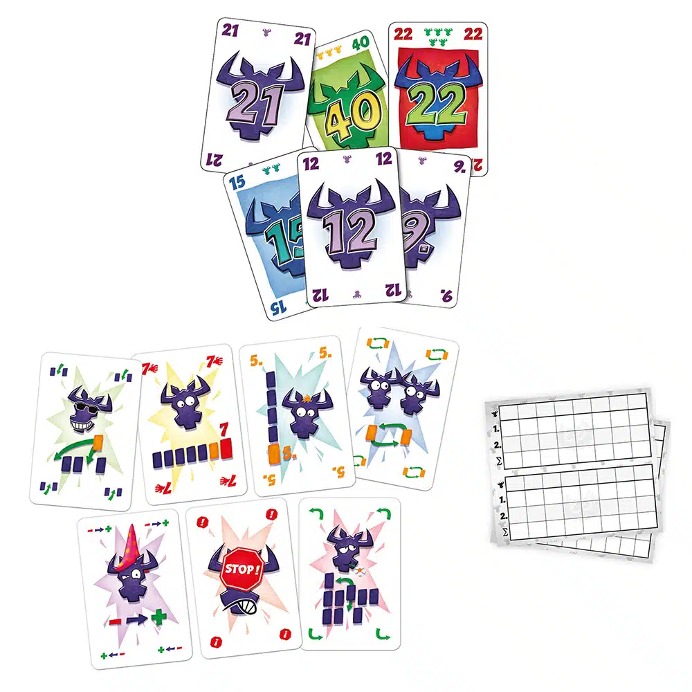 Les règles sont les mêmes que pour 6 qui prend mais vous ne jouez que 2 manches. Car en effet, en plus d’avoir les cartes Numéro classiques vous avez aussi des cartes spéciales. Le but du jeu est avoir le moins de têtes de bœuf à la fin de la partie. Les cartes Numéro ont 2 valeurs, une valeur numérique (de 1 à 104) et une valeur de 1 à 7 représenté par des « têtes de bœufs ». Chaque manche débute avec 4 cartes tirées au hasard qui formeront 4 rangées. Lors de ces manches, chaque joueur reçoit 12 cartes Numéro et 3 cartes spéciales au hasard. Les joueurs choisissent ensuite une carte parmi les 12 cartes Numéro et la posent face cachée. Les cartes Numéro sont ensuite placées dans une des 4 rangée de la plus petite à la plus grande. Au bout d’un moment certaines rangées contiendront 5 cartes et lorsque l’un des joueurs pose sa carte en sixième place il prend les 5 cartes et pose la sienne à la première place. Lorsqu’un joueur pose une carte plus petite que celles déjà présentes sur la table il ramasse la rangée de son choix (normalement celle qui contient le moins de tête de bœuf). La première manche cesse lorsque tous les joueurs ont terminé de jouer leurs cartes numéros. Les joueurs reçoivent de nouveau le même nombre de cartes et une seconde manche est jouée. Les cartes spéciales sont utilisées au moment de placer les cartes Numéro dans les rangées. Le joueur peut jouer sa carte spéciale puis placer, en suivant les règles de celle-ci, sa carte Numéro.