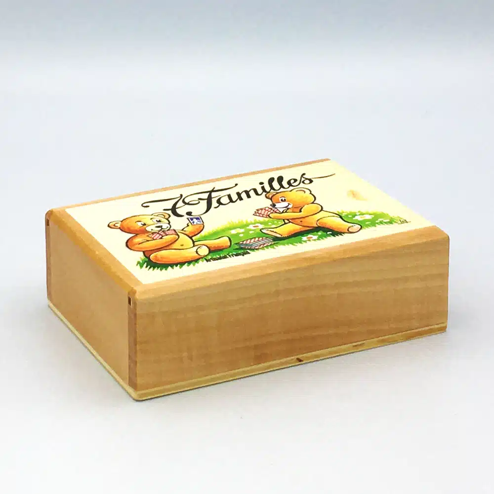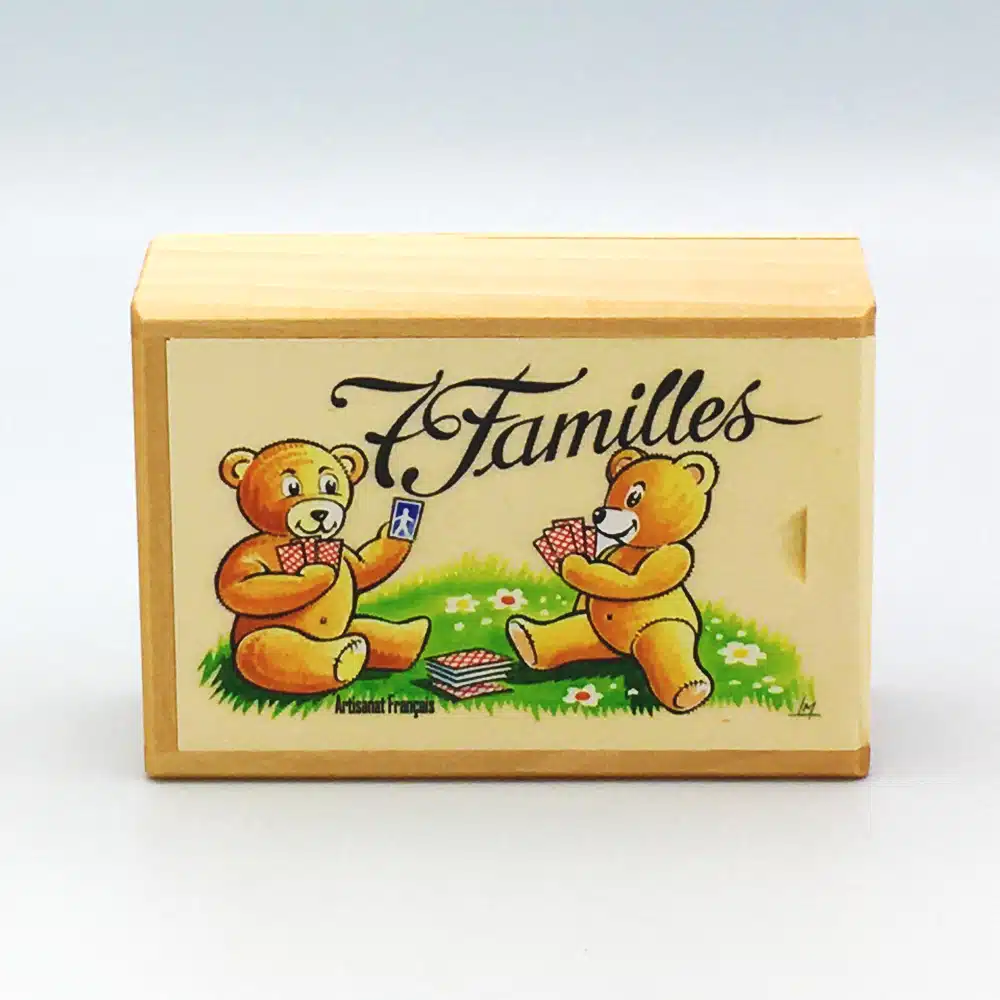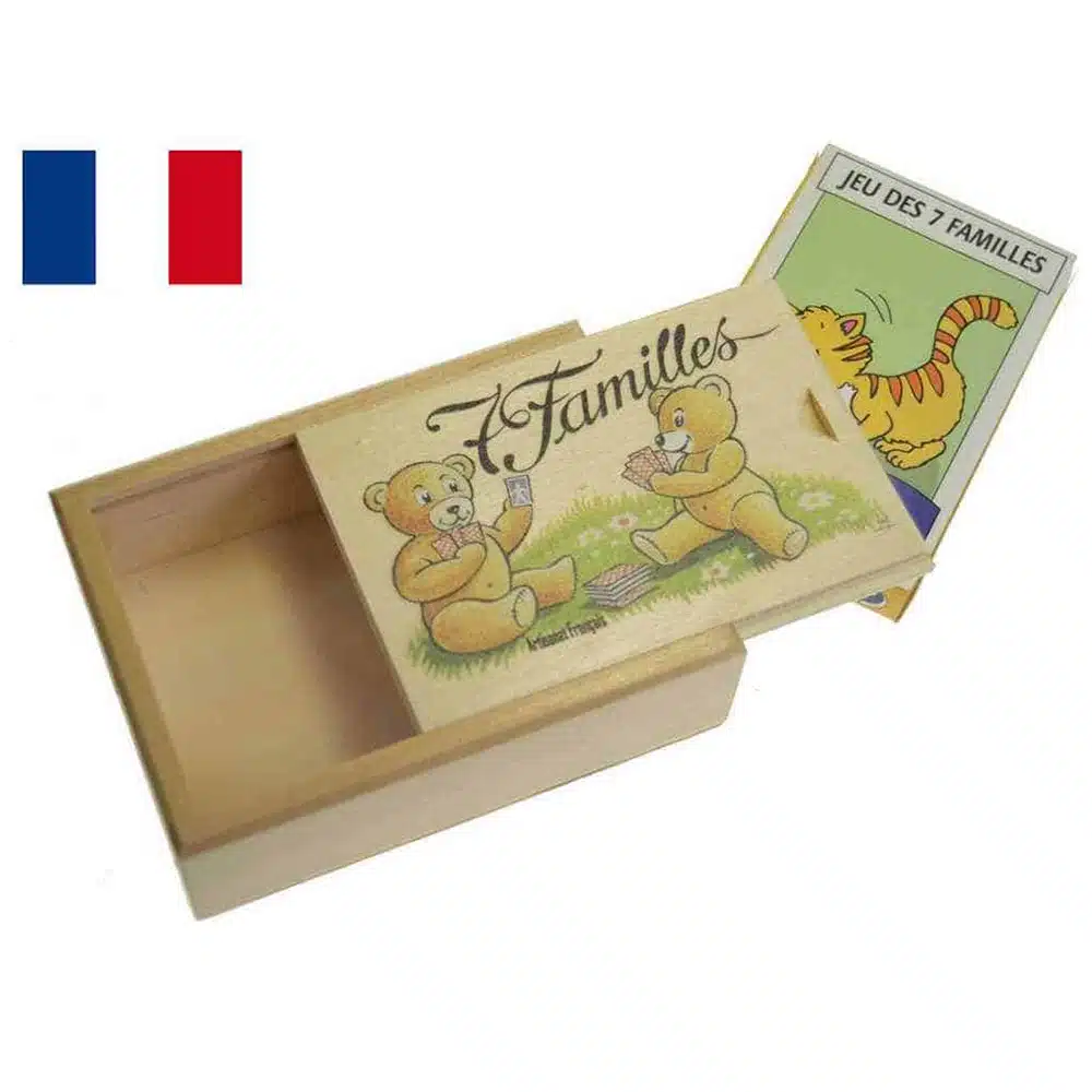 Jeux de 7 familles dans une boîte en bois fabriquée par nos artisans dans le Jura en France. À partir de 6 ans.