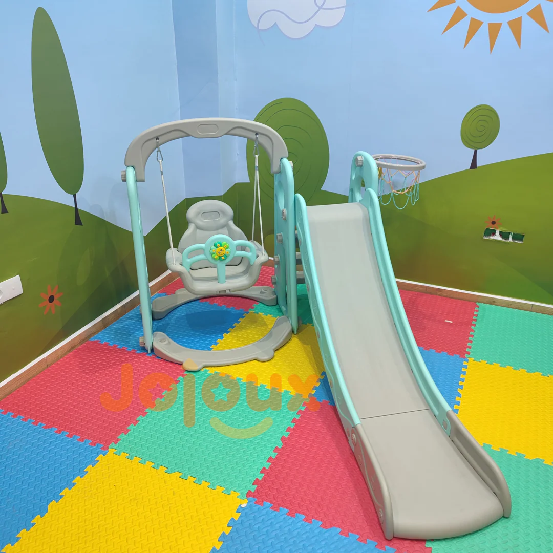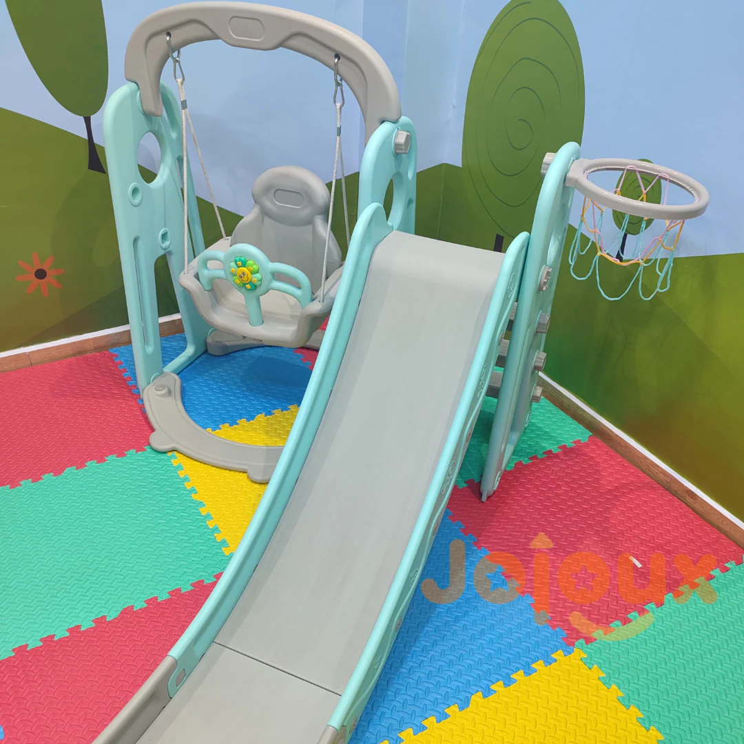Offrez à vos enfants un espace de jeu complet avec cette aire de jeux multifonction 5 en 1. Ce produit comprend un toboggan sécurisé, une balançoire avec harnais de sécurité, un panier de basketball, des marches faciles à grimper, ainsi qu’un espace de rangement pratique. Adaptée aux garçons et aux filles de 3 à 7 ans, cette aire de jeux est idéale pour les activités en intérieur et en extérieur, que ce soit dans le jardin ou la chambre. Conçue pour stimuler la coordination et l’équilibre, tout en offrant des heures de divertissement, elle fera le bonheur des tout-petits.