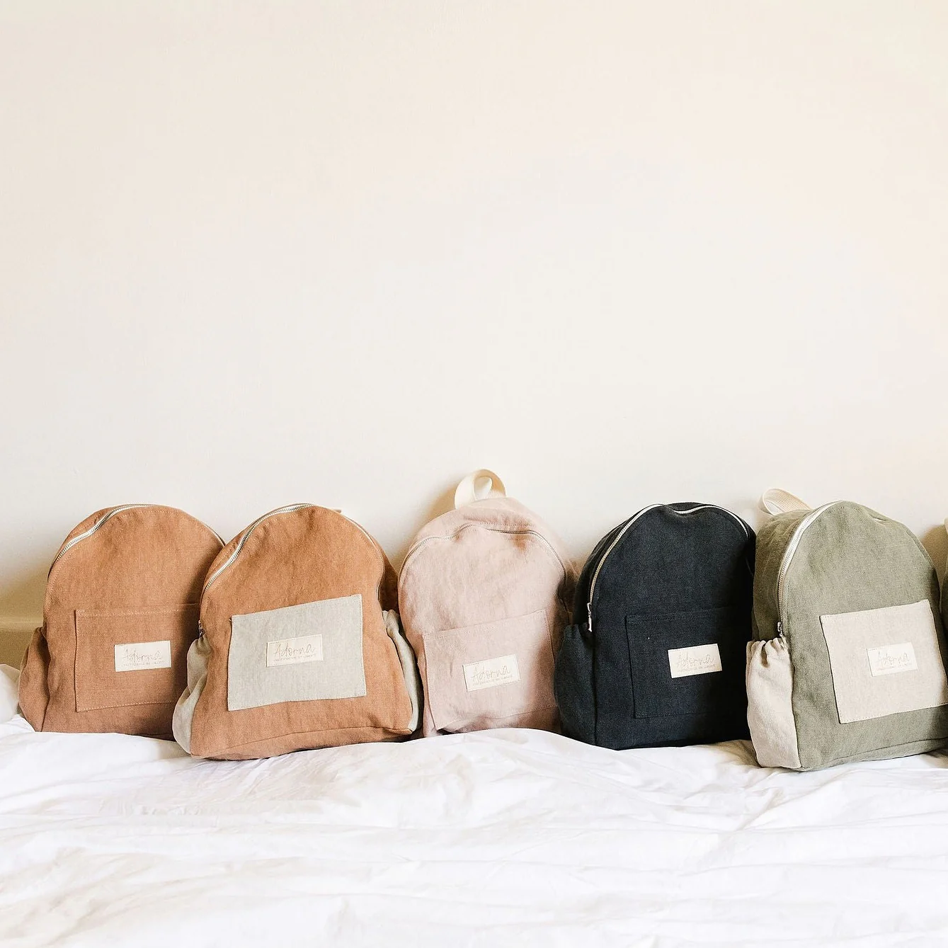 Nous avons donc sélectionné le même lin que nous utilisons pour la confection des sacs Emma et Caroline pour fabriquer les sacs à dos Alexia. Un lin belge, épais et solide.