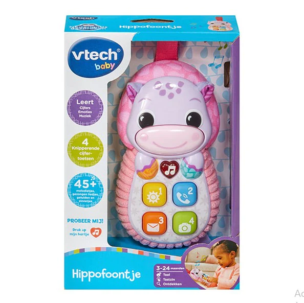 Avec son Allô Bébé Toudoux Vtech-rose, votre tout-petit s’amuse à imiter les grands et découvre des phrases, chansons et sons amusants avec la douce compagnie de Théo, son nouvel ami l’hippo.
