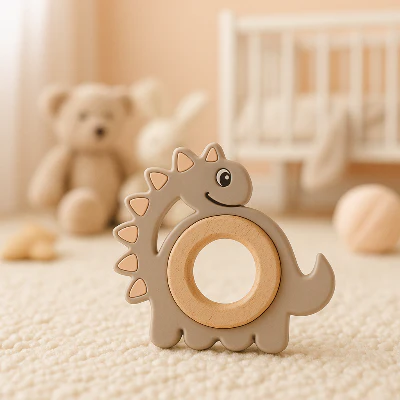 🦕 Matériau : Bois et Silicone de qualité alimentaire, sans BPA, SANS PHTALATE, sans latex, Sans Nitrosamine, SANS PVC