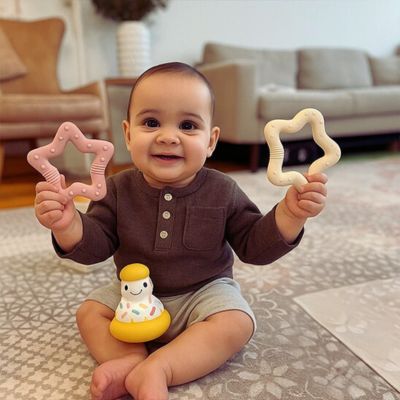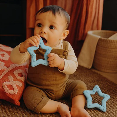 Avez-vous remarqué que votre bébé explore le monde avec sa bouche ? Notre anneau de dentition en forme d’étoile est spécialement conçu pour répondre à ce besoin naturel d’exploration.