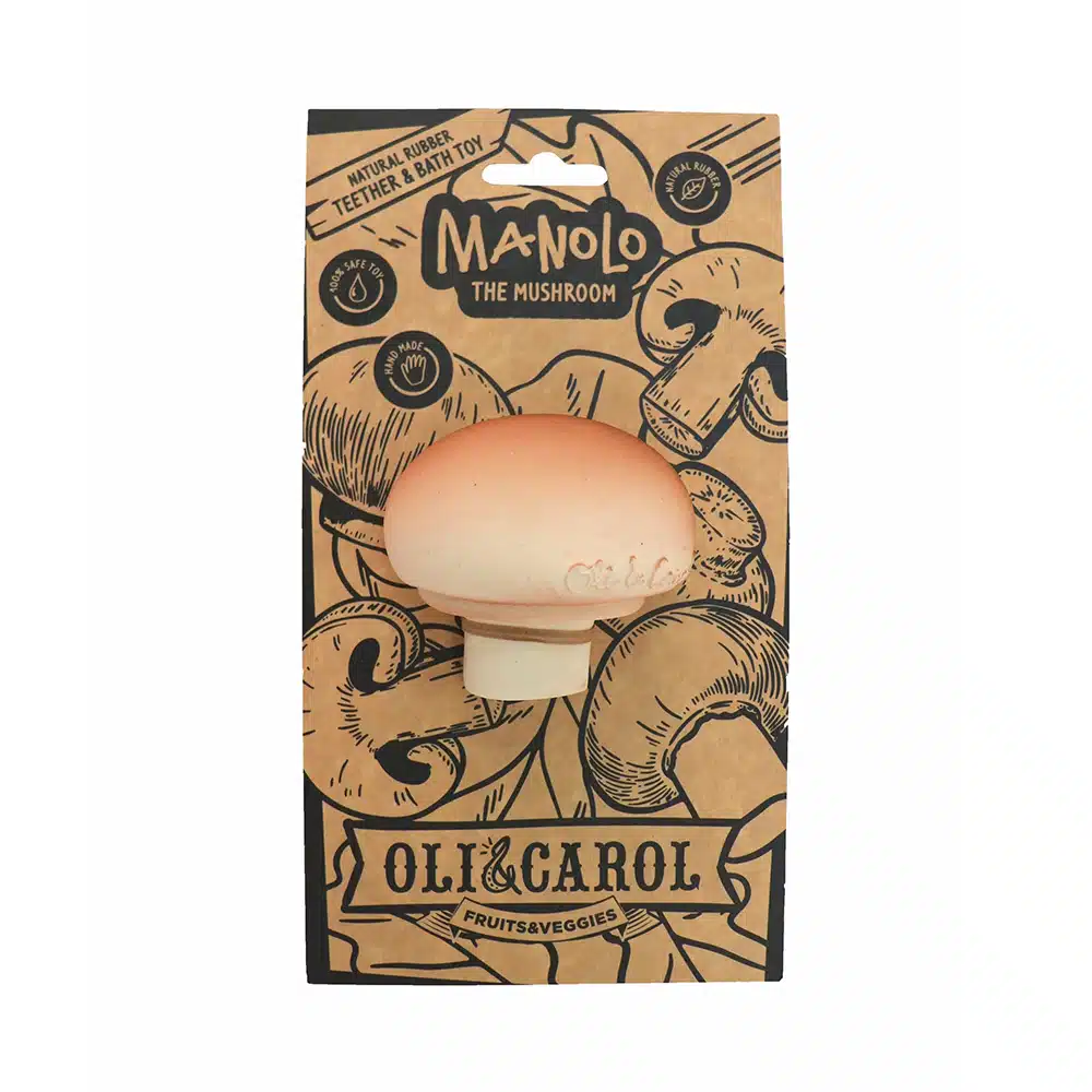 Manolo le champignon de Oli & Carol, anneau de dentition pour bébé en caoutchouc 100% naturel.