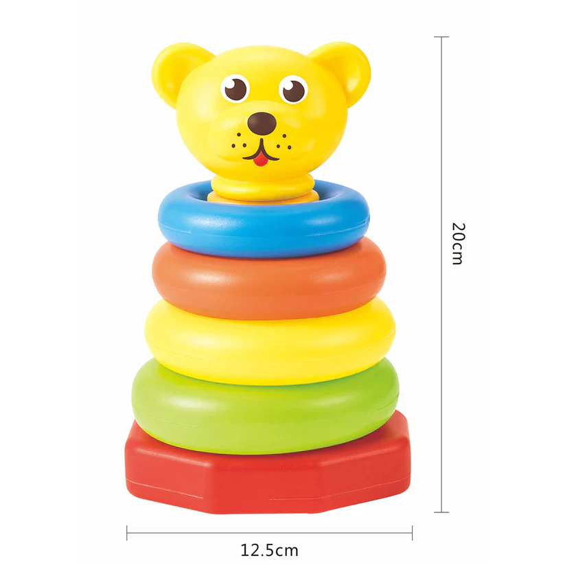 Découvrez ce jouet amusant et éducatif qui comprend un anneau d’empilage en plastique sûr avec quatre anneaux colorés et une adorable tête d’ours. Parfait pour le développement précoce et un divertissement sans fin. Empilez, apprenez et jouez.