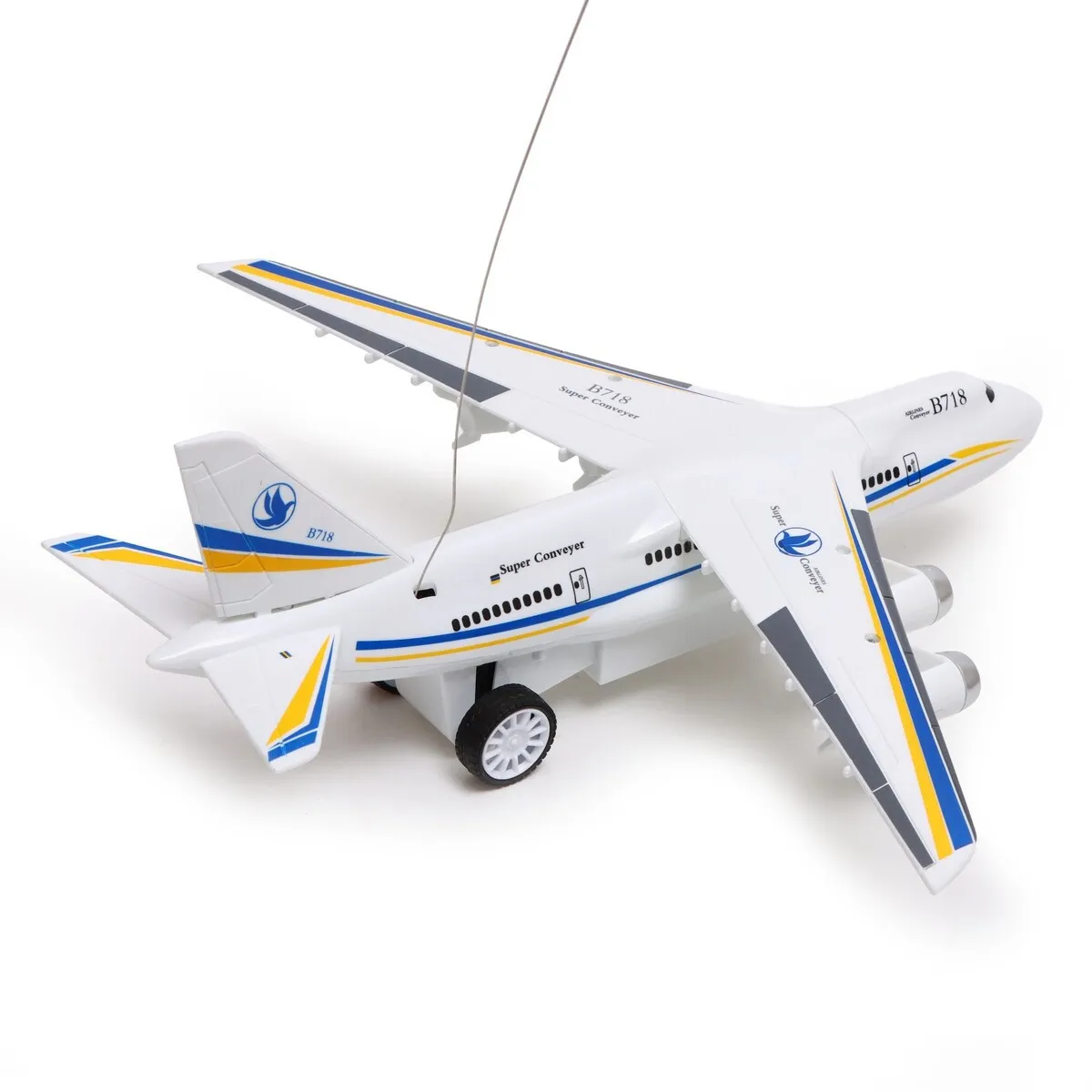 Vous pouvez contrôler l’avion avec un pilote à distance. L’avion peut avancer, reculer, tourner et même faire des tonneaux. Il est alimenté par une fréquence radio de 40 MHz, ce qui permet un fonctionnement à distance fluide. Un effet spécial est fourni par des diodes électroluminescentes installées dans le fuselage de l’avion et sur les côtés des ailes, qui sont clairement visibles même dans l’obscurité.