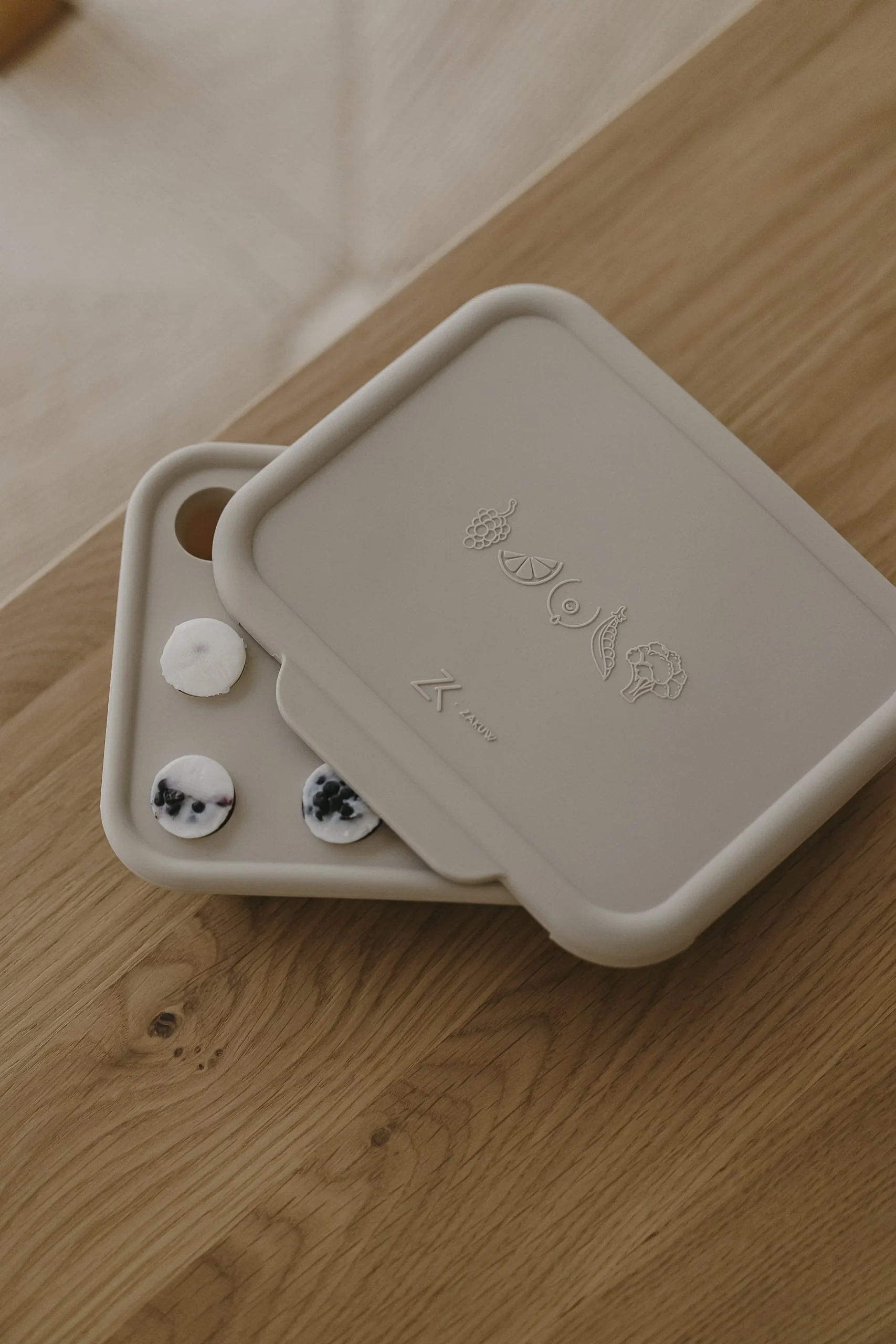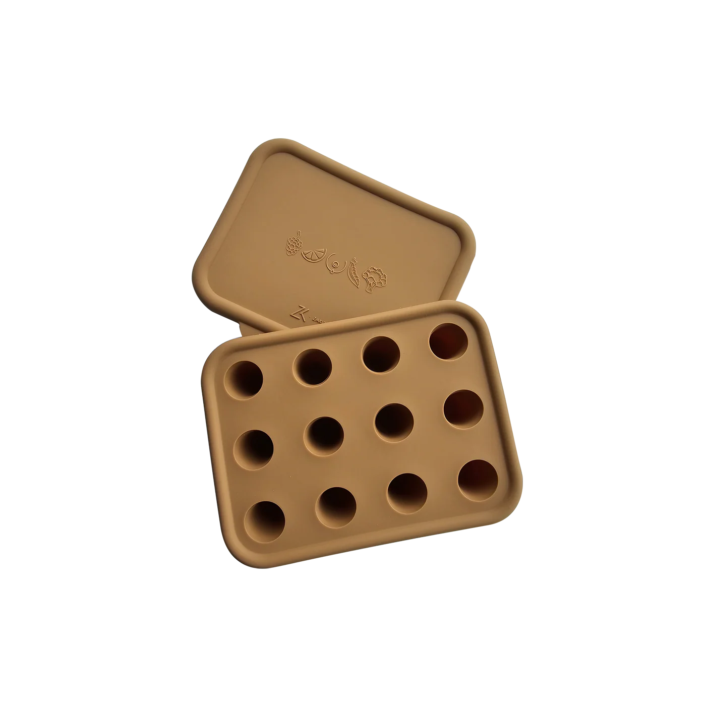 Un bac en silicone permettant de réaliser des glaçons adaptés à nos tétines grignoteuses pour congeler du lait maternel, des smoothies, purée de fruits ou légumes… pour soulager bébé lors des poussées dentaires.
