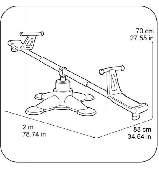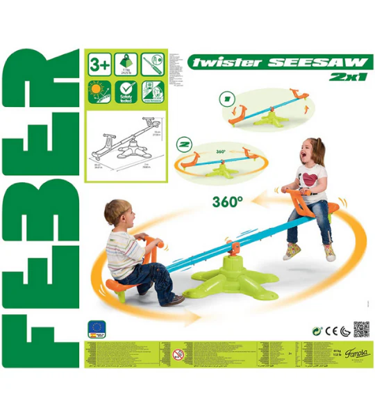 Quoi de plus captivant que de jouer sur une balançoire rotative à 360 degrés ? avec cette balançoire à bascule feber dans le jardin, vous constaterez que vos tout-petits ne peuvent pas en avoir assez de leur temps de jeu ! fait de plastique durable, la bascule est résistante à la lumière du soleil et aux différences de température. Les grands pieds avec trous de montage assurent que la bascule est fixée au sol pour une sécurité maximale. Grâce aux sièges de forme ergonomique avec poignées antidérapantes, vos enfants s’assoiront sur la bascule confortablement et en toute sécurité. Cette balançoire à bascule colorée sera un ajout amusant et décoratif à l’ensemble de jeu extérieur de vos enfants ! il convient aux enfants de 3 ans et plus.
