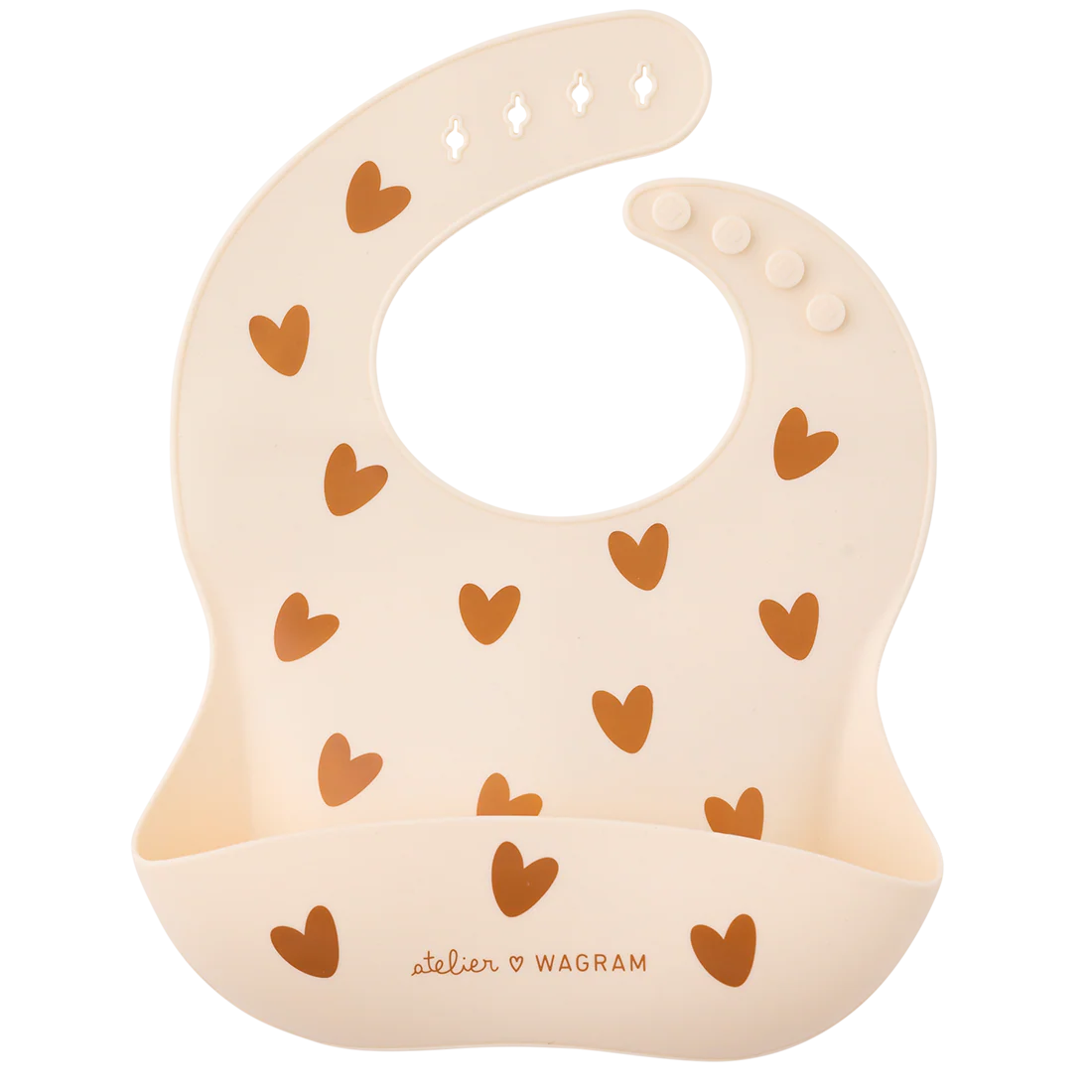 Bavoir en silicone avec réservoir . A croquer avec ses petits coeurs! Format : 23x30cm En silicone de qualité alimentaire, étanche et résistant Sans BPA, sans phtalates et sans PVC Convient dès 3 mois Lavable au lave vaisselle