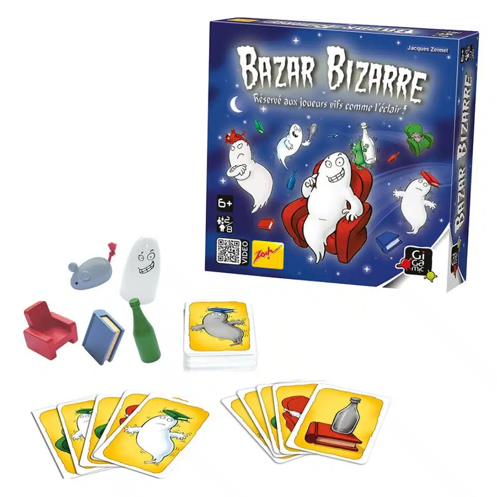 Bazar Bizarre ! Jeu d’ambiance, de la marque Gigamic, réservé aux joueurs vifs comme l’éclair ! à partir de 6 ans, de 2 à 8 joueurs, 20 min de jeu.