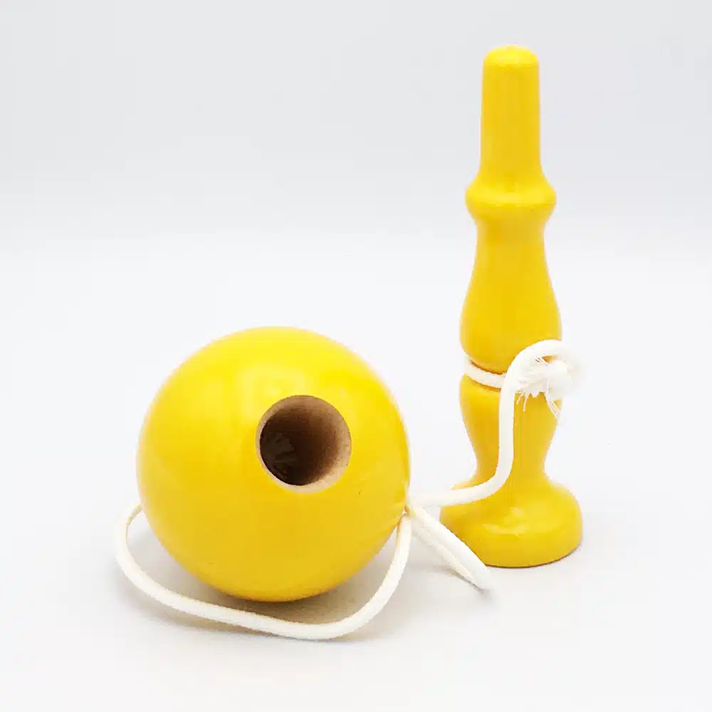 Le but du jeu est simple : tenez le manche dans une main, laissez pendre la boule et tentez de la remettre sur la tige sans la toucher ! Les techniques sont variées, véritable jeu d’adresse et de jonglerie, développe la motricité, l’agilité et la dextérité.