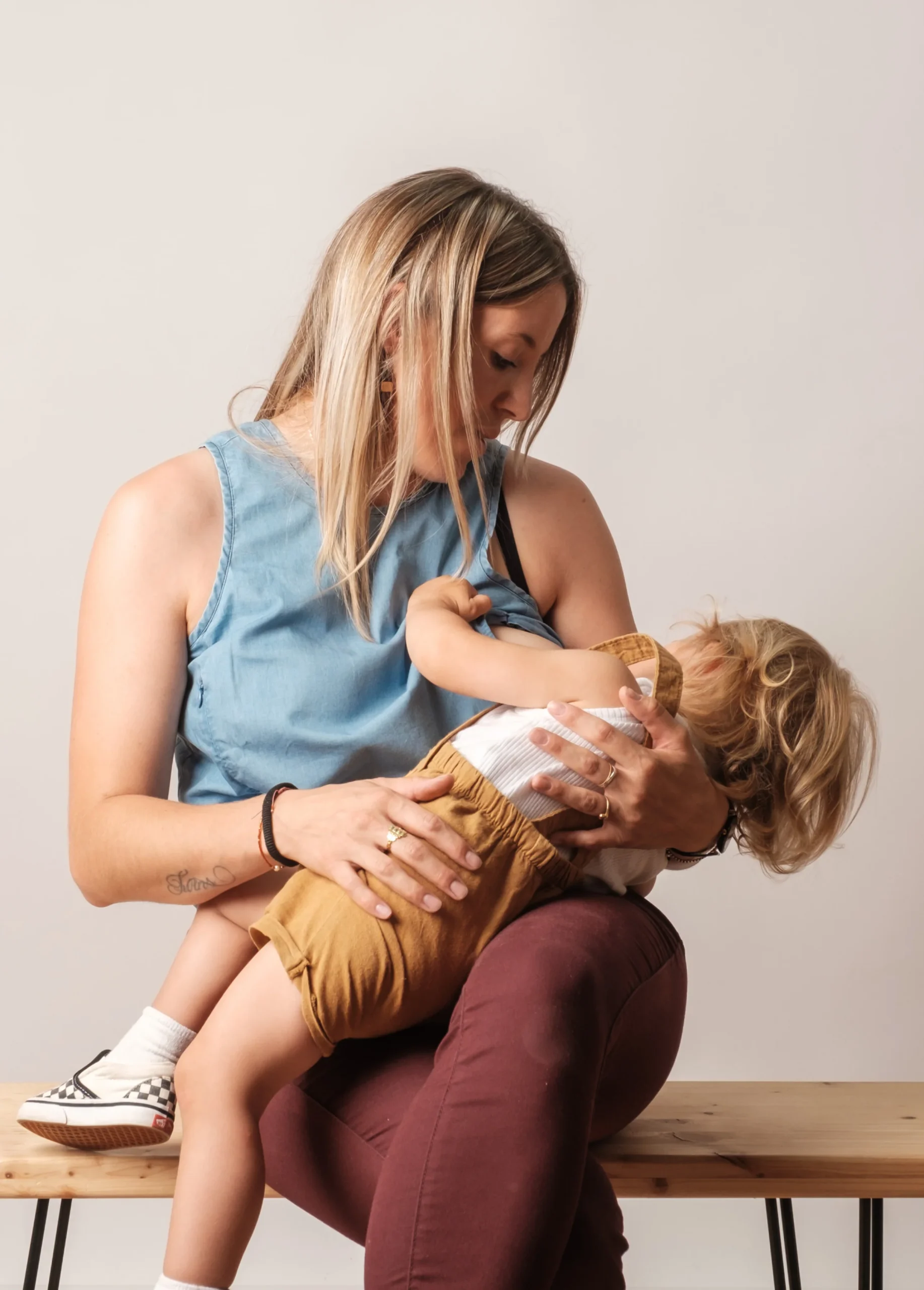 - Deux ouvertures zip verticales à l’extérieur de la poitrine pour faciliter l’allaitement.