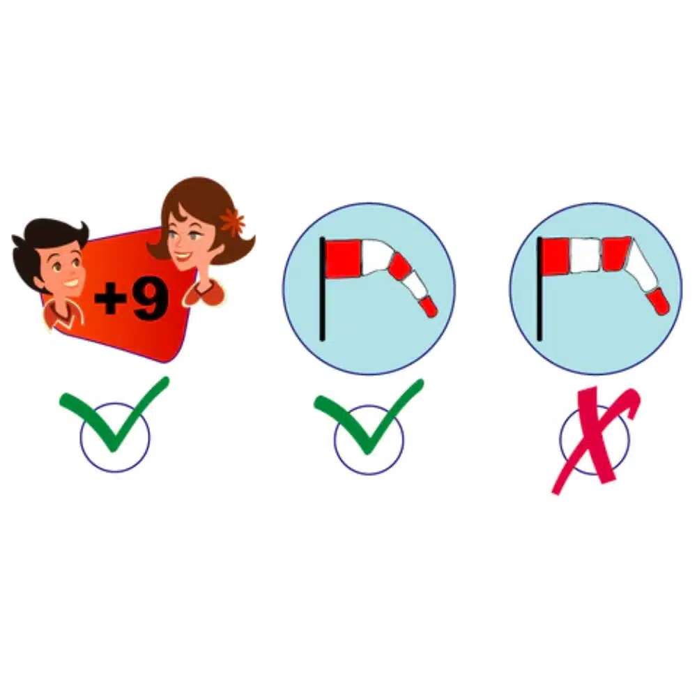 - A utiliser en vent léger. Privilégiez les petites brises régulières et constantes. Soyez vigilants, surtout par jour de grands vents.
