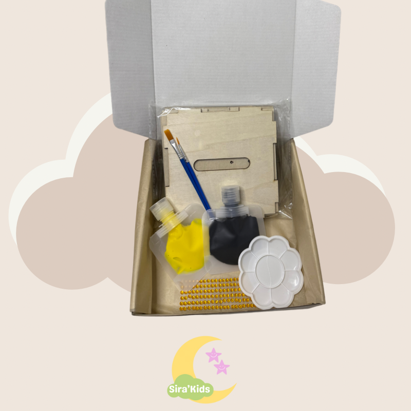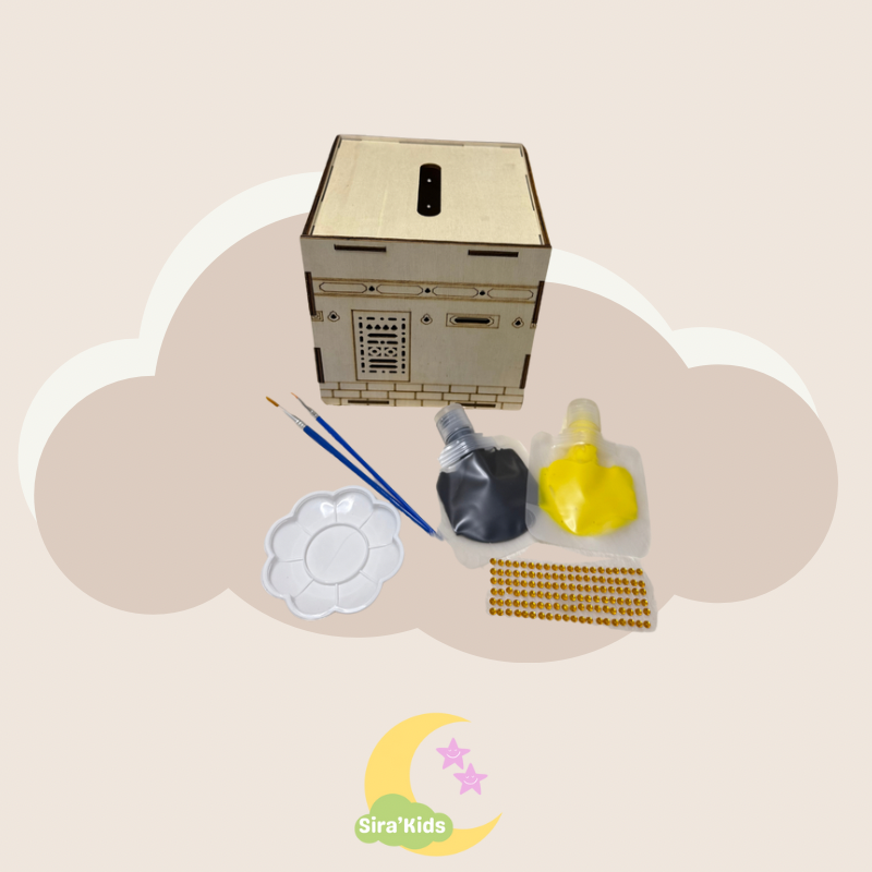 Parfaite pour allier apprentissage, créativité et transmission de valeurs, cette activité manuelle aide les enfants à comprendre l’importance de l’économie, du partage et de la charité (sadaqa). Ils pourront peindre leur propre Kaaba, la décorer avec des autocollants brillants dorés et l’utiliser pour économiser ou préparer des dons.