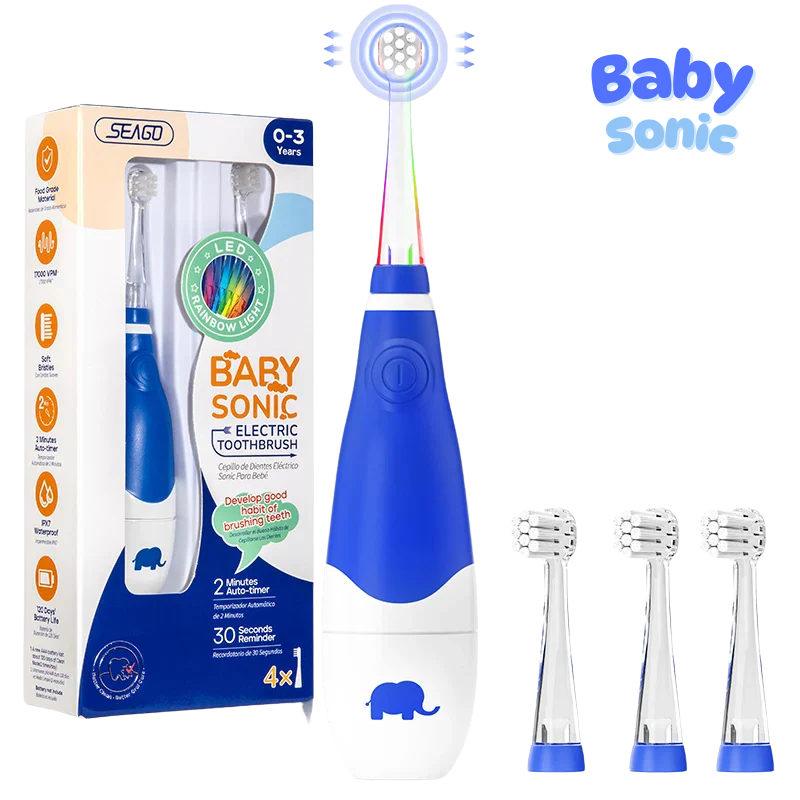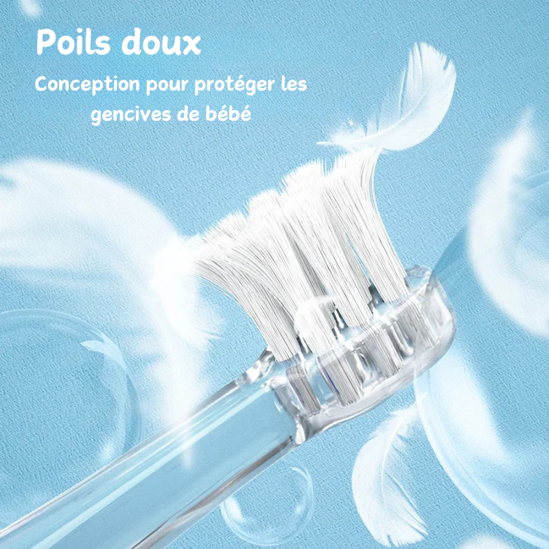 Brosse à dents électrique Baby Sonic : nettoie en douceur, protège les gencives et rend le brossage amusant pour les petits ! Un soin parfait dès le plus jeune âge.