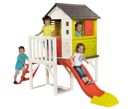 Vos enfants grimperont à l’échelle pour rejoindre leur cabane, où ils pourront s’amuser avec le toboggan ou imaginer des histoires sur la terrasse.