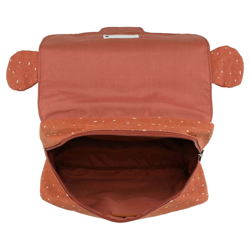 Le cartable a un grand compartiment et une petite poche à l’avant où peut se glisser facilement un petit en-cas. Les deux ouvertures se font grâce à deux fermetures éclair.
