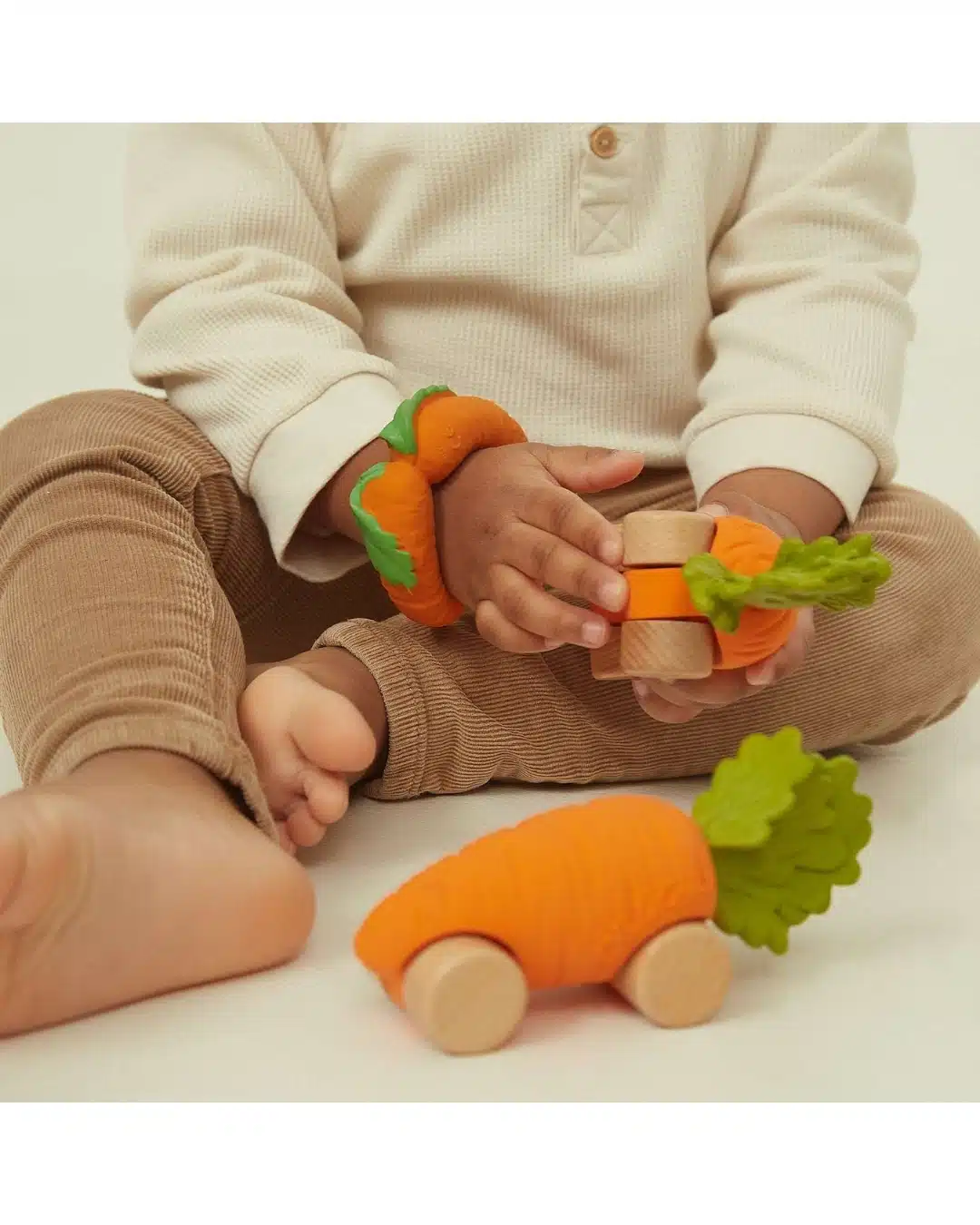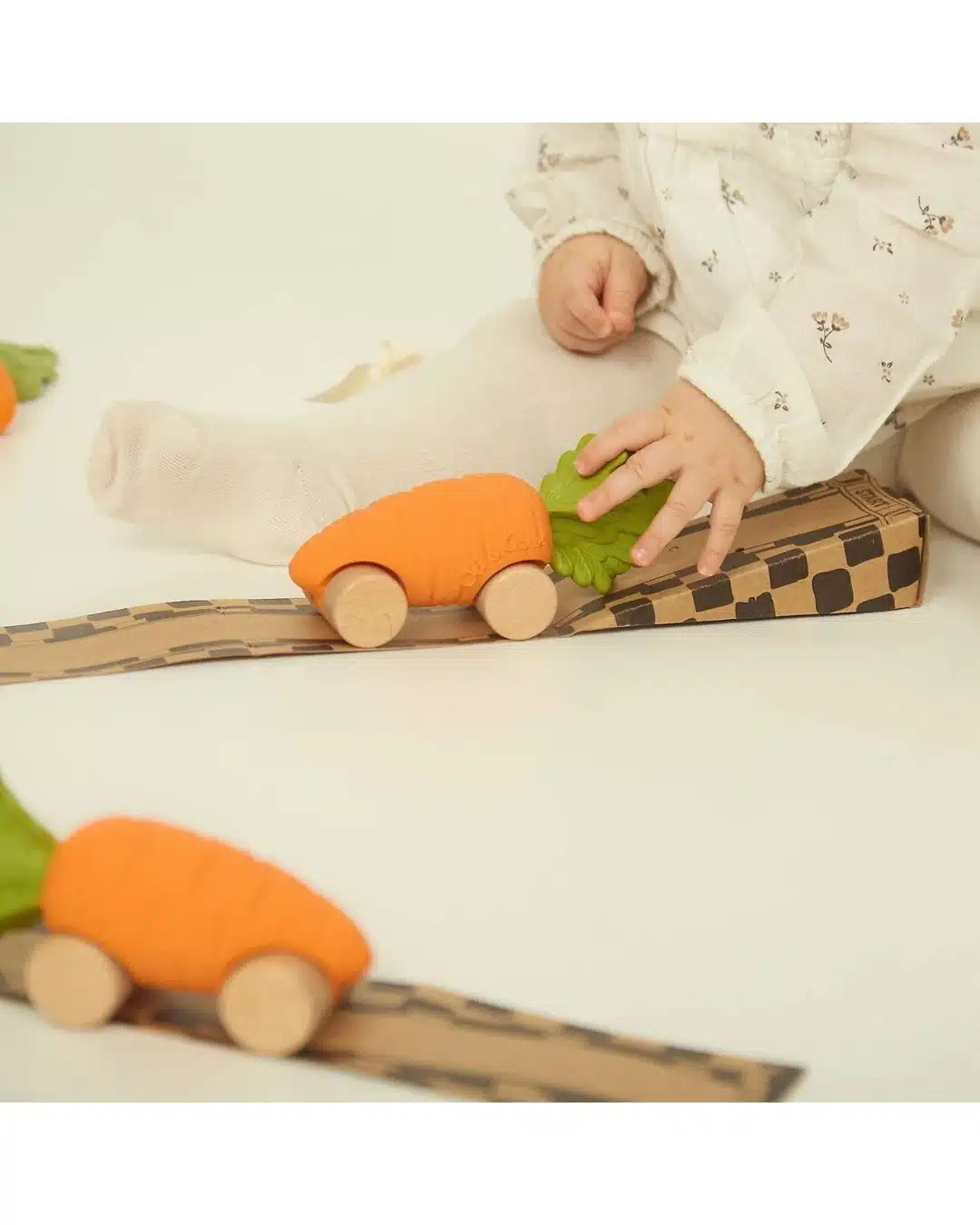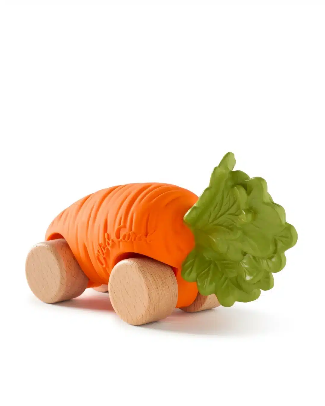 Cathy la voiture carotte de Oli & Carol, jouet pour bébé en caoutchouc 100% naturel.