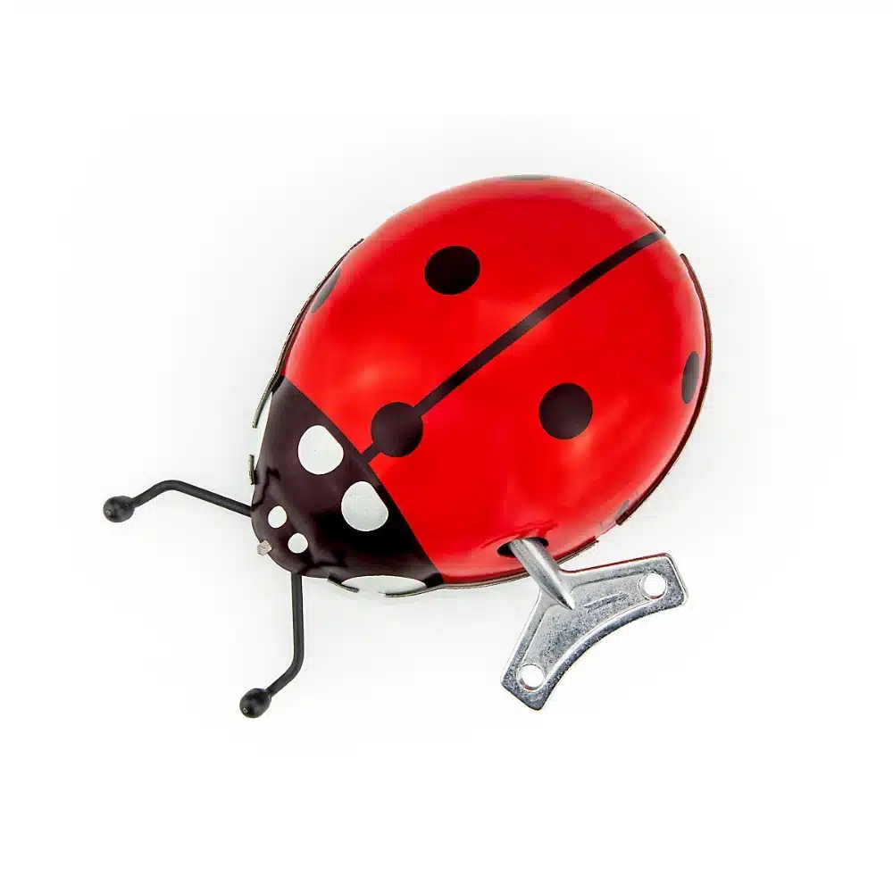 Coccinelle à remonter en tôle, jouet de collection à l’ancienne fabriqué à la main en République Tchèque.
