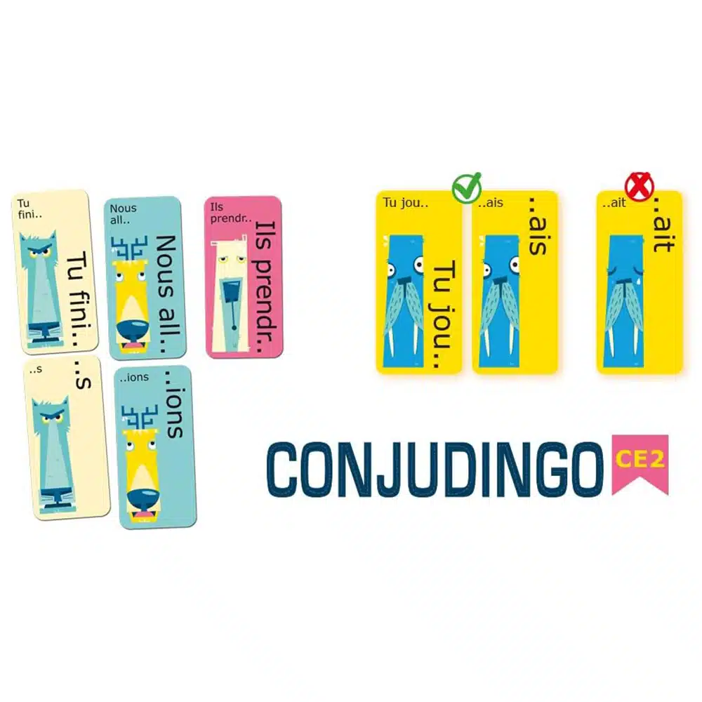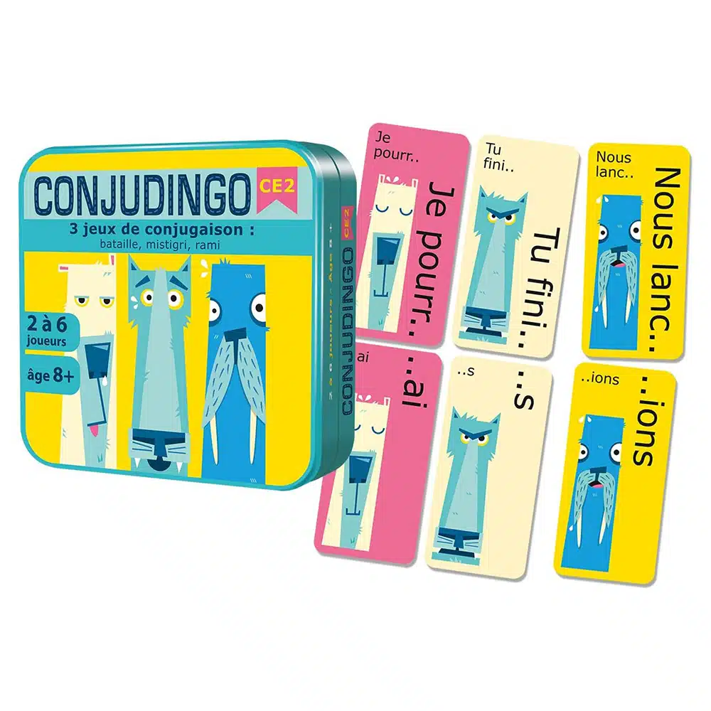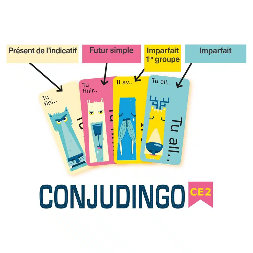 3 jeux faciles et rigolos pour travailler les verbes du 2ème et 3ème groupes au présent, au futur et à l’imparfait. À partir de 8 ans, de 2 à 6 joueurs, niveau CE2.