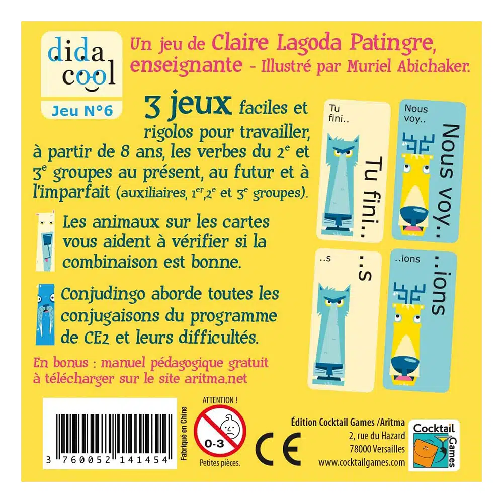 Jeux de cartes de conjugaison. Édition Cocktail Games – Aritma. À partir de 8 ans.