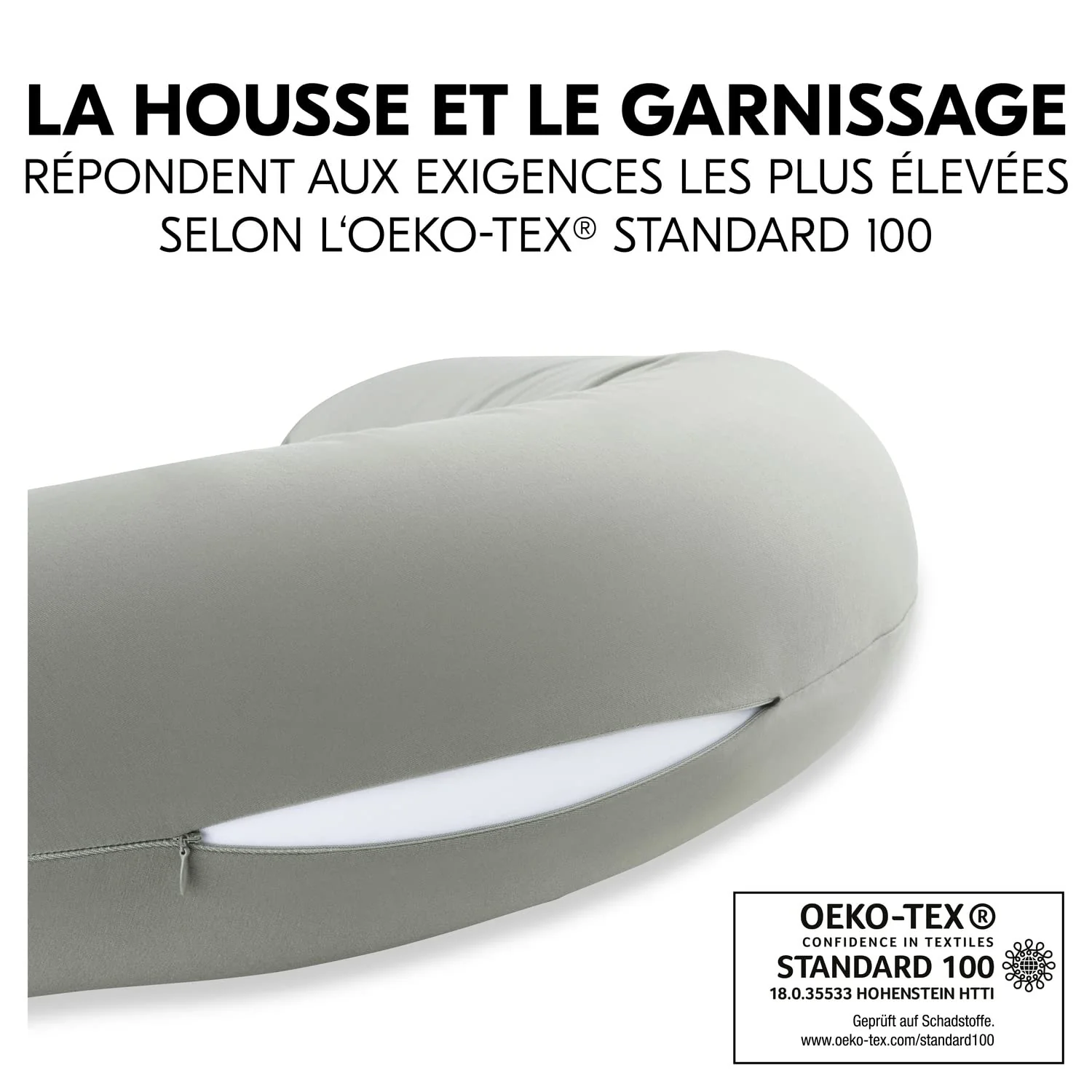 Ce coussin d’allaitement est pensé pour accompagner chaque moment important : se détendre en lisant, s’endormir lovée sur le côté, installer bébé en toute sécurité. Le coton jersey respirant, certifié OEKO-TEX® STANDARD 100, caresse la peau de maman comme celle de bébé, été comme hiver. Son rembourrage réglable garde sa forme, silencieux et toujours prêt à soutenir votre allaitement au quotidien.