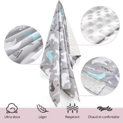 D’une taille généreuse de 100 cm x 75 cm, cette couverture polyvalente s’adapte à toutes les situations : dans le berceau, la poussette, le siège auto ou simplement posée sur le tapis d’éveil. Elle offre un espace suffisant pour envelopper complètement votre bébé ou servir de surface douce pour ses moments d’éveil. Sa légèreté la rend facile à transporter, devenant ainsi l’accessoire indispensable de toutes vos sorties.