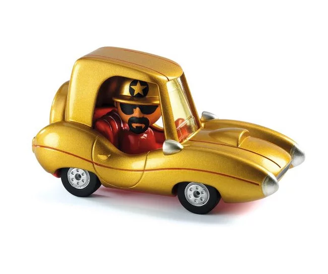 Découvrez Golden Star de la collection Crazy Motors de Djeco, une voiture en métal avec son pilote. Un jouet pour les enfants de 3 à 9 ans.