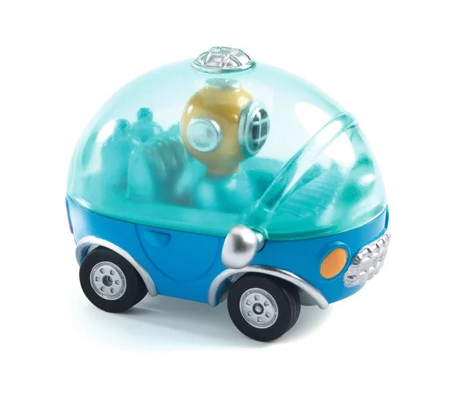 Découvrez Nauti Bubble de la collection Crazy Motors de Djeco, une voiture en métal avec son pilote. Un jouet pour les enfants de 3 à 9 ans.