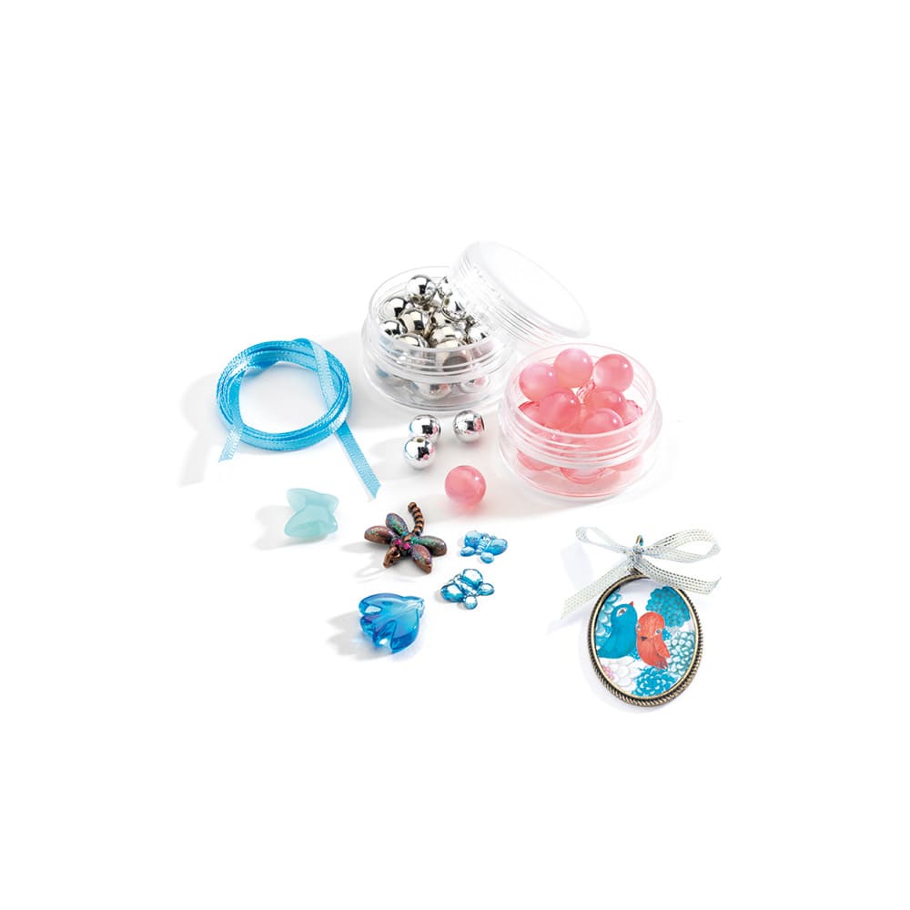 Des idées de montage simple, sans fermoirs, un joli choix de perles et accessoires, tout est regroupé dans ce kit perles et oiseaux de Djeco pour créer de beaux bijoux aux couleurs coordonnées.