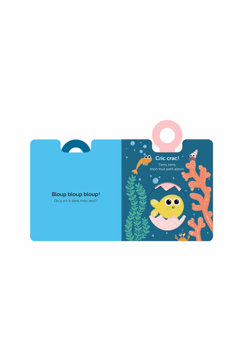 Toc, toc, toc ! Qu’y a-t-il dans mon oeuf ?Tire sur la poignée qui fait clac, et découvre qui se cache à l’intérieur ! Un livre-surprise à tirettes, pour découvrir les bébés animaux qui naissent dans des oeufs. 12 pages . Dès 3 ans.