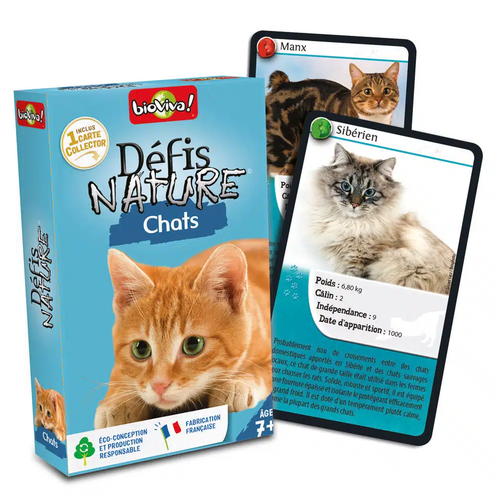 Jeu de cartes, de 2 à 6 joueurs, environ 20 min, de la marque Bioviva, fabriqué en France et éco conçu, vous emmène à la rencontre des chats.