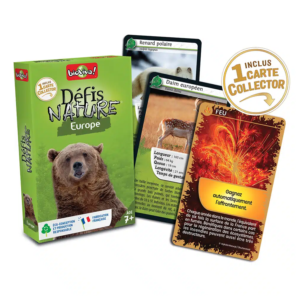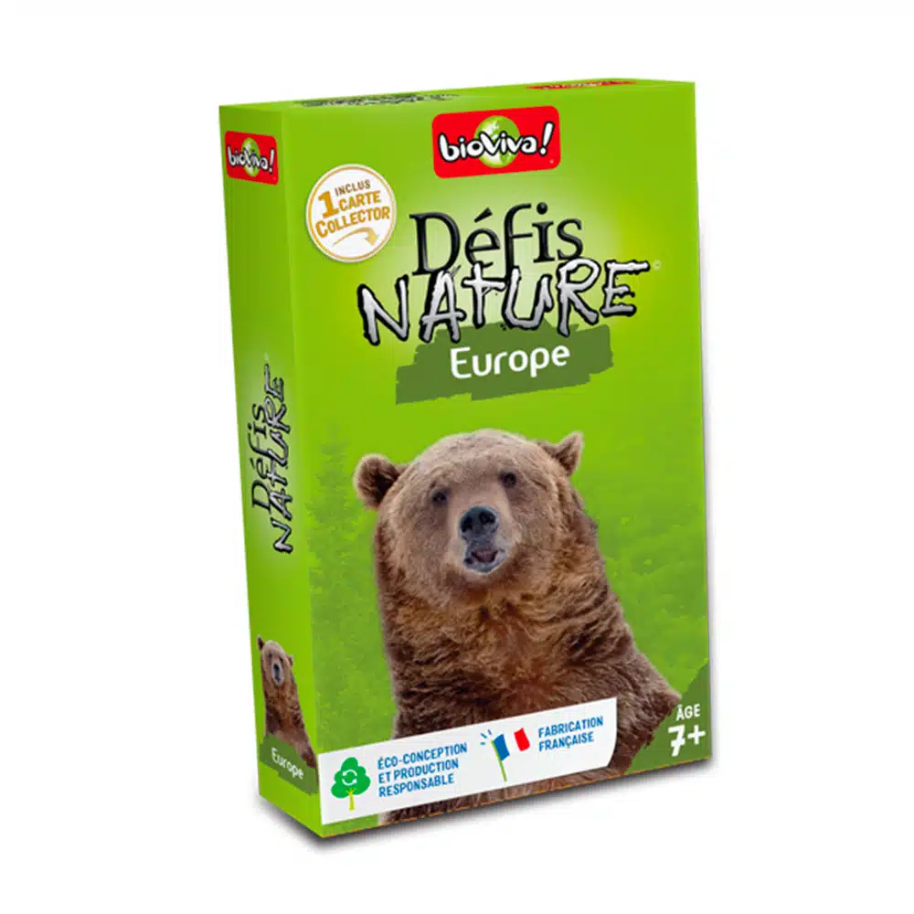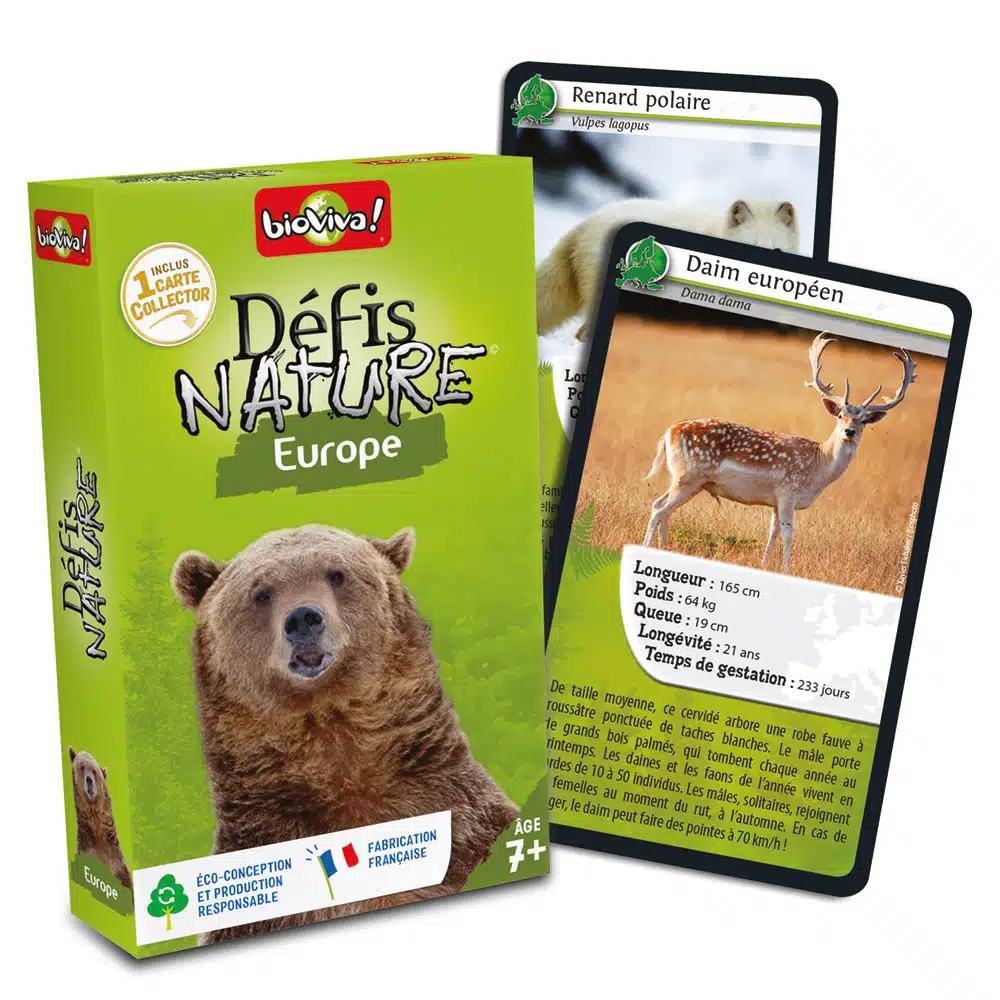 Jeu de cartes, de 2 à 6 joueurs, environ 20 min, de la marque Bioviva, fabriqué en France et éco conçu, vous emmène à la rencontre des animaux d’Europe.