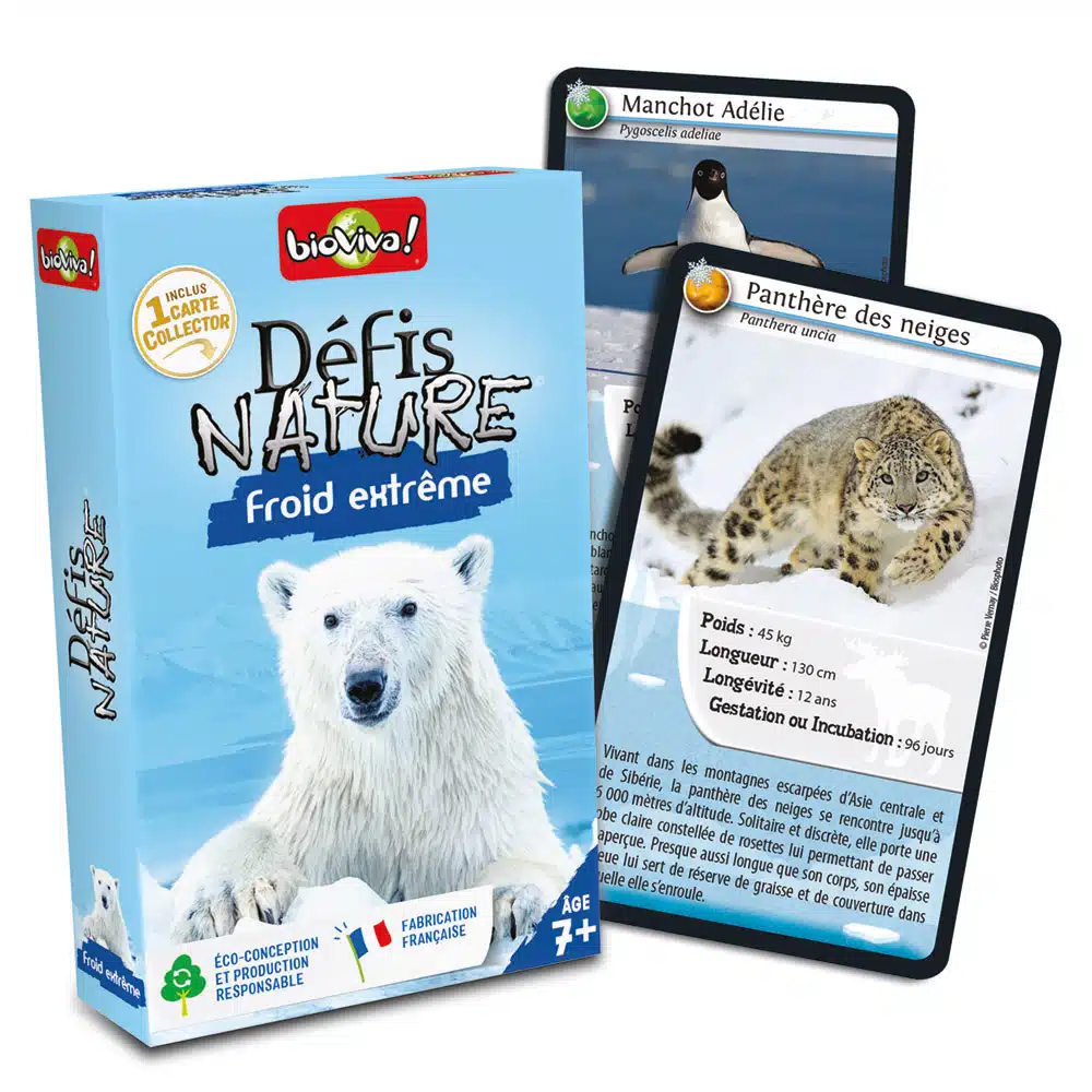 Jeu de cartes, de 2 à 6 joueurs, environ 20 min, de la marque Bioviva, fabriqué en France et éco conçu, vous emmène à la rencontre des animaux du grand froid.