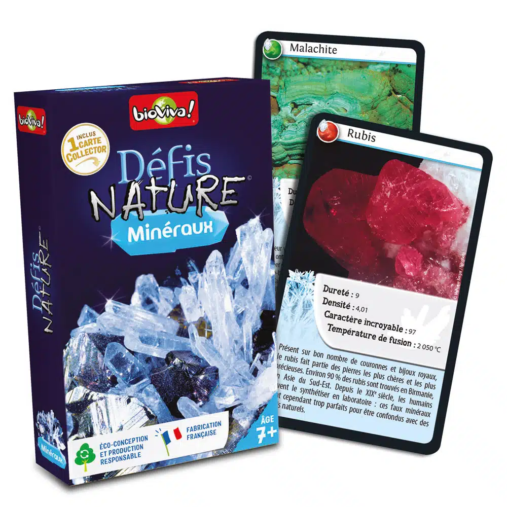 Jeu de cartes, de 2 à 6 joueurs, environ 20 min, de la marque Bioviva, fabriqué en France et éco conçu, vous emmène à la rencontre des minéraux.