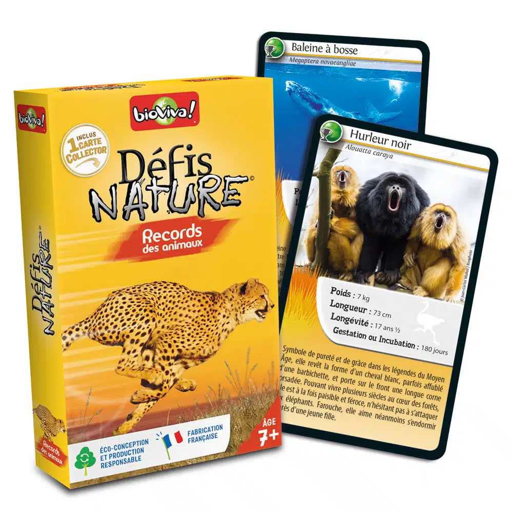 Jeu de cartes, de 2 à 6 joueurs, environ 20 min, de la marque Bioviva, fabriqué en France et éco conçu, vous emmène à la rencontre des records des animaux.