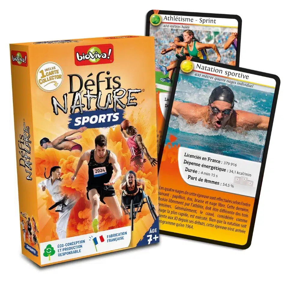 Jeu de cartes, de 2 à 6 joueurs, environ 20 min, de la marque Bioviva, fabriqué en France et éco conçu, vous emmène à la rencontre des sports de compétition.