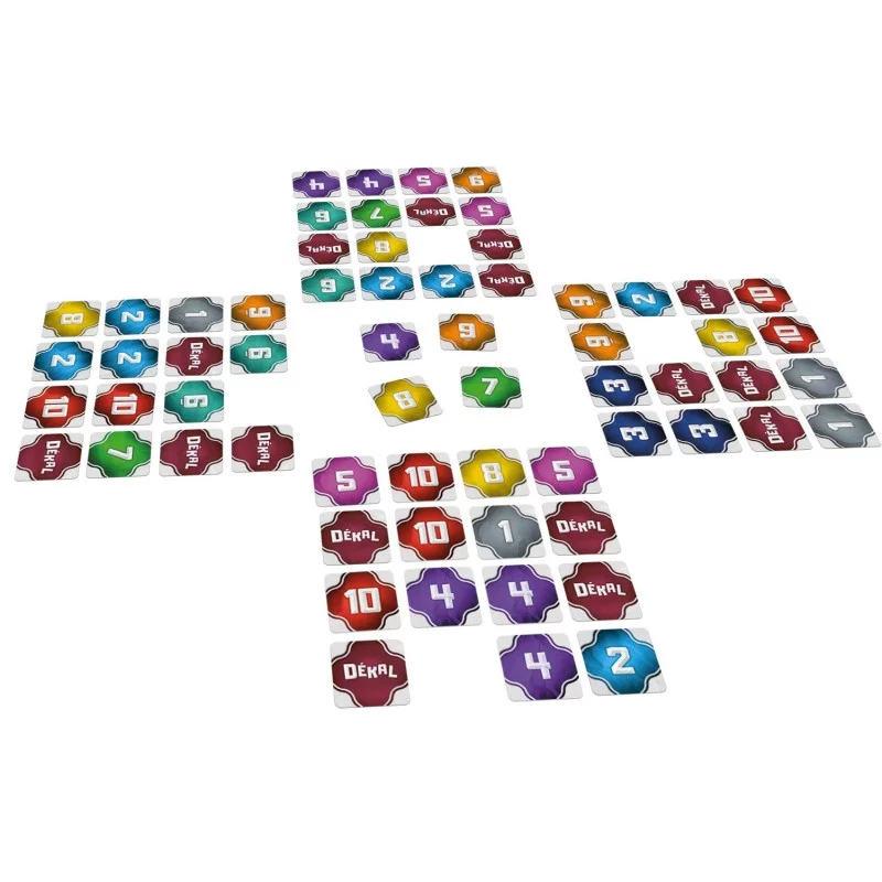 Dans Dékal, agencez au mieux votre grille de cartes afin d’obtenir le moins de points possible. À chaque tour, jouez une carte puis reformez un carré parfait en poussant une ligne ou une colonne. En fin de partie, les cartes adjacentes de même valeur s’annulent, ce qui permet de marquer moins de points.