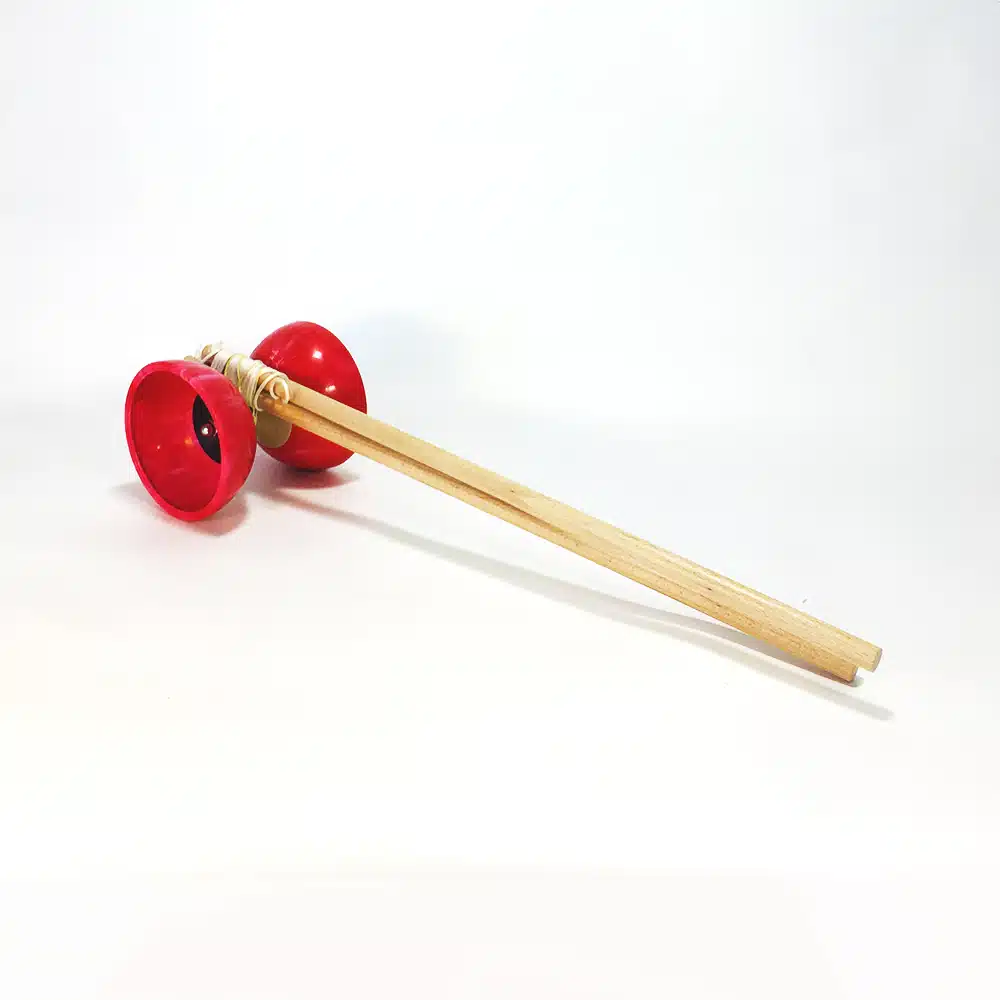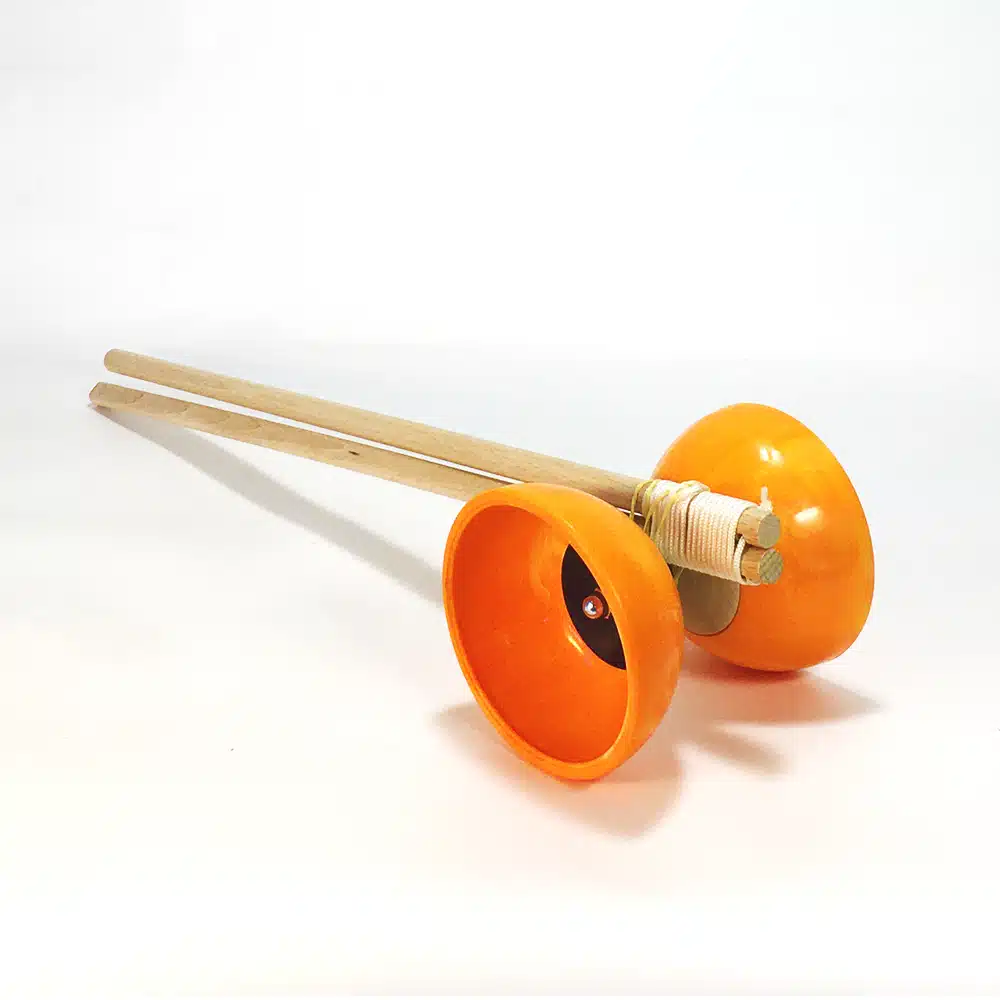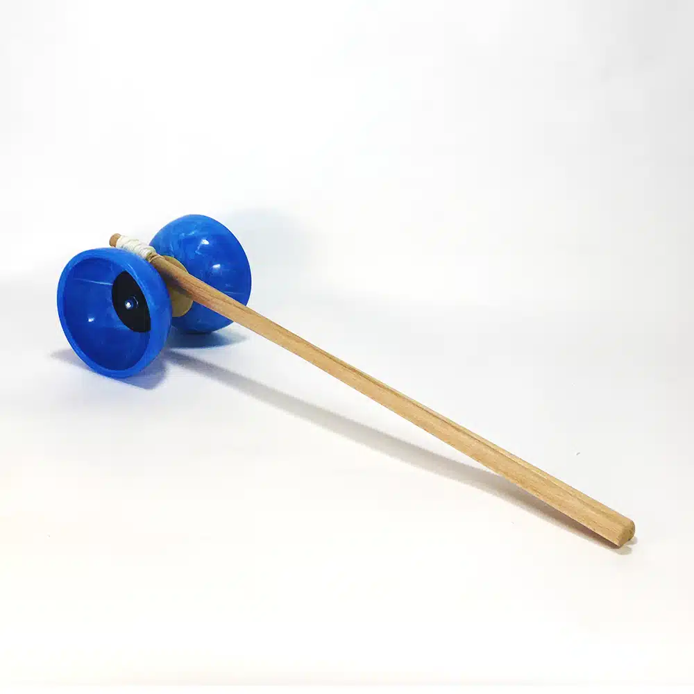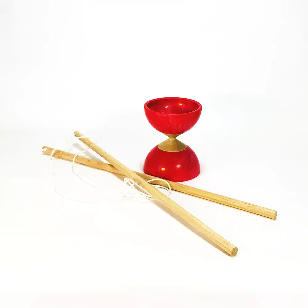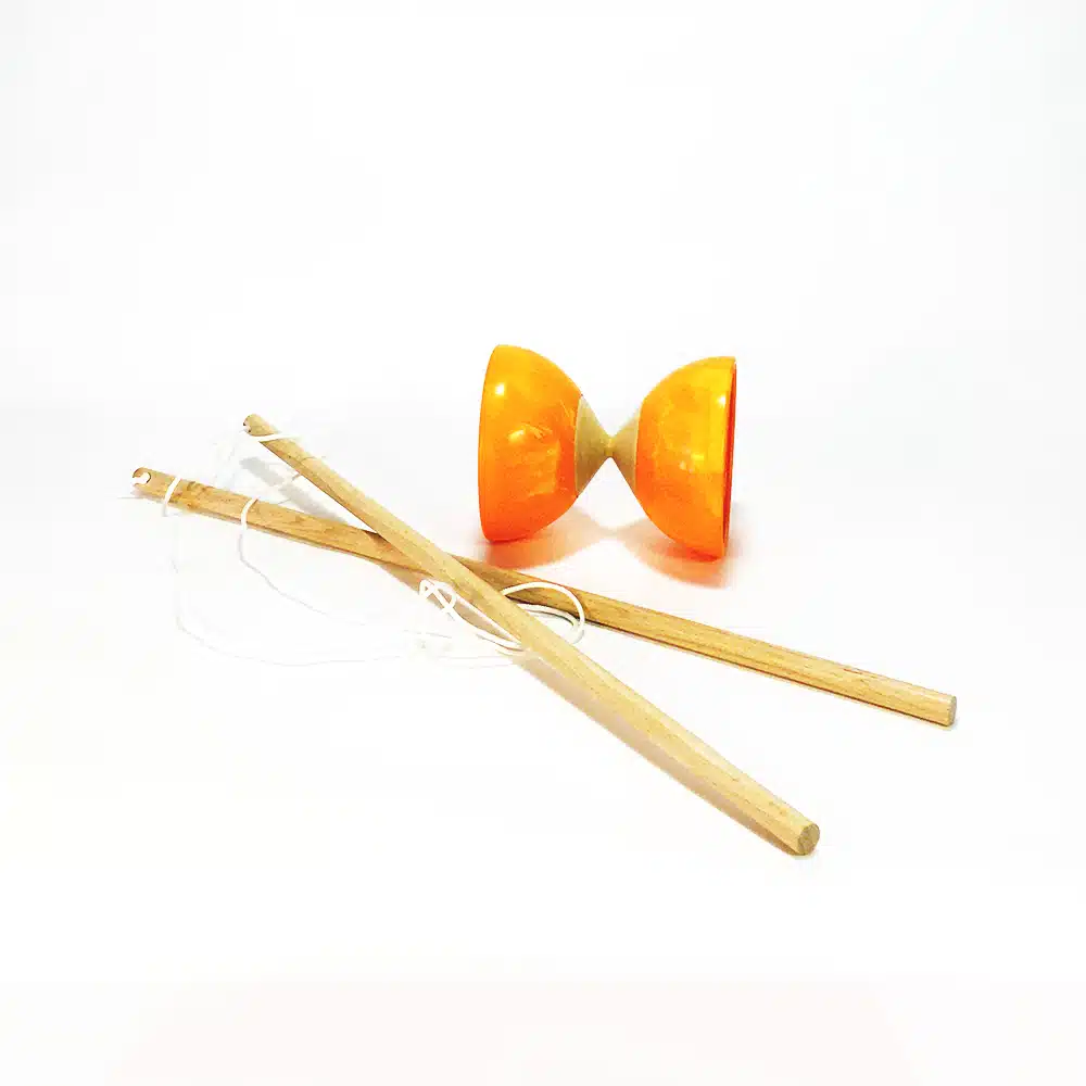 Diabolo diamètre 100 mm avec 2 baguettes en bois et une ficelle.