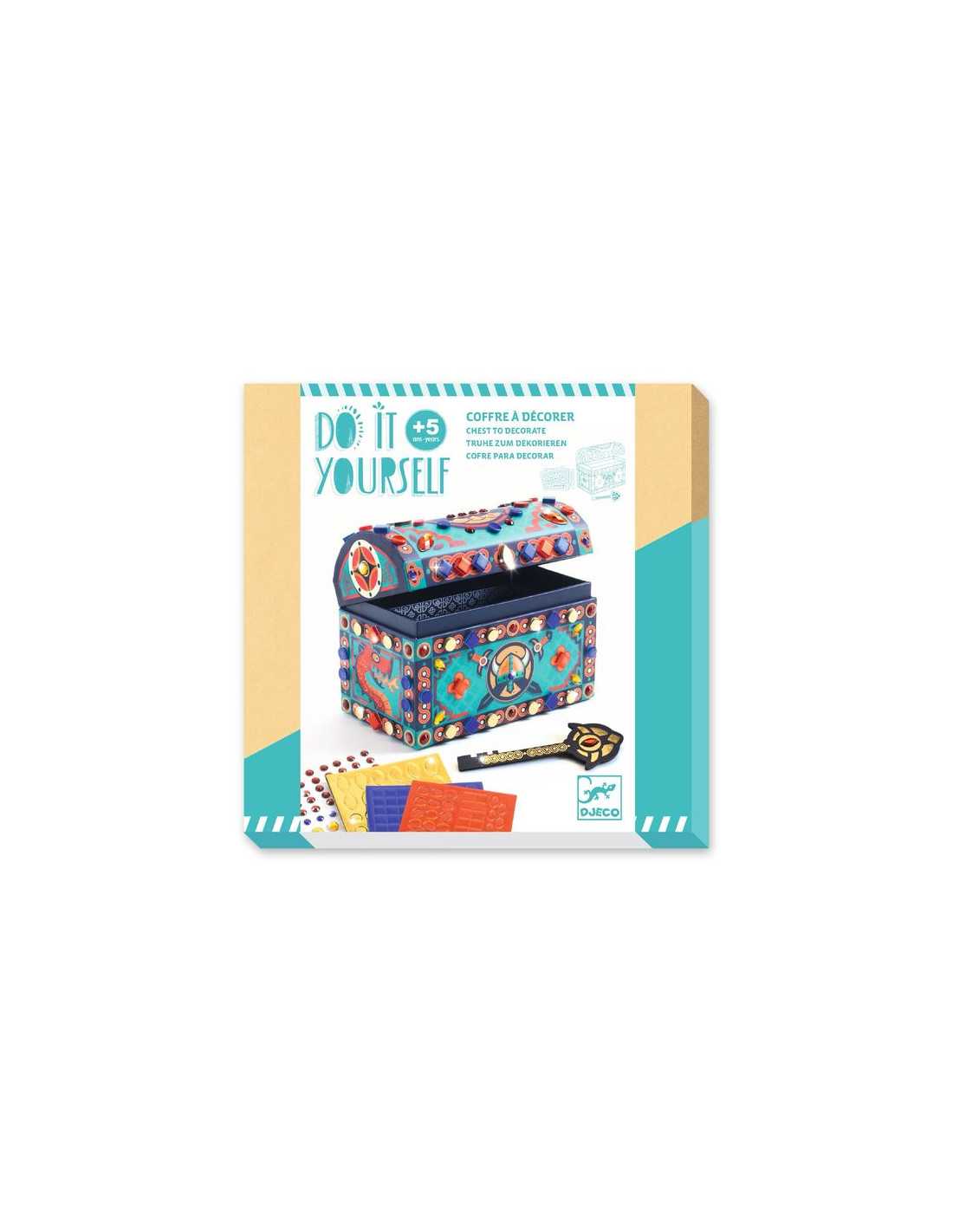 Découvrez le coffre à décorer Super trésor de la collection Do It Yourself de Djeco, un atelier créatif qui invite les enfants, dès 5 ans, à personnaliser leur propre coffre au trésor à l’aide de plus de 150 mosaïques autocollantes et strass adhésifs.
