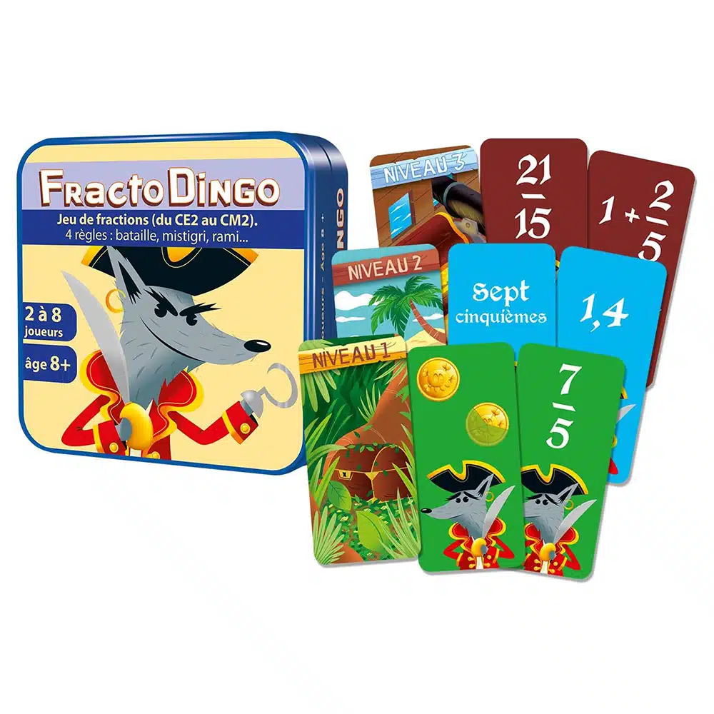 Un jeu amusant pour connaître les fractions du CE2 au CM2. Maîtrisez les représentations des fractions et leurs additions. Jouez à la Bataille, au Rami et au Mistigri pour aider les pirates à partager leur trésor. 3 niveaux de difficulté, à partir de 8 ans, de 2 à 8 joueurs, niveau du CE2 au CM2.
