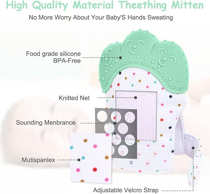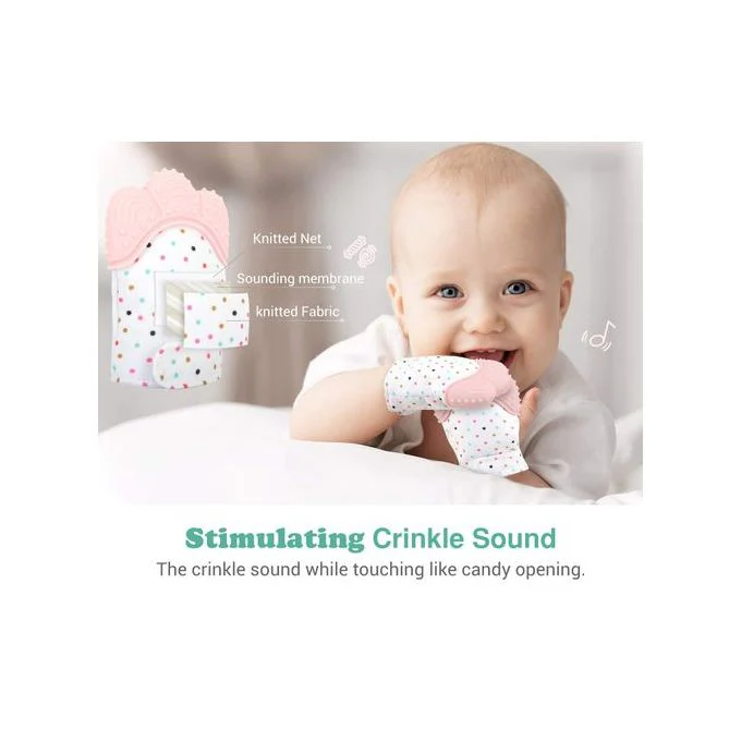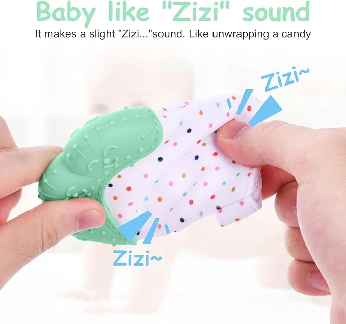 Le gant de dentition pour bébé est fabriqué en silicone de qualité alimentaire, qui est durable, non toxique et sans danger pour les bébés.