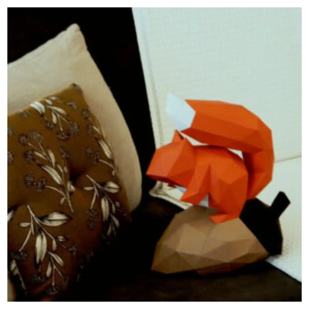 Trophée en papier 3D Gédéon l’écureuil, décoration murale originale 100% fabrication française et éco-responsable de la marque Agent-Paper, à monter soi-même niveau moyen.