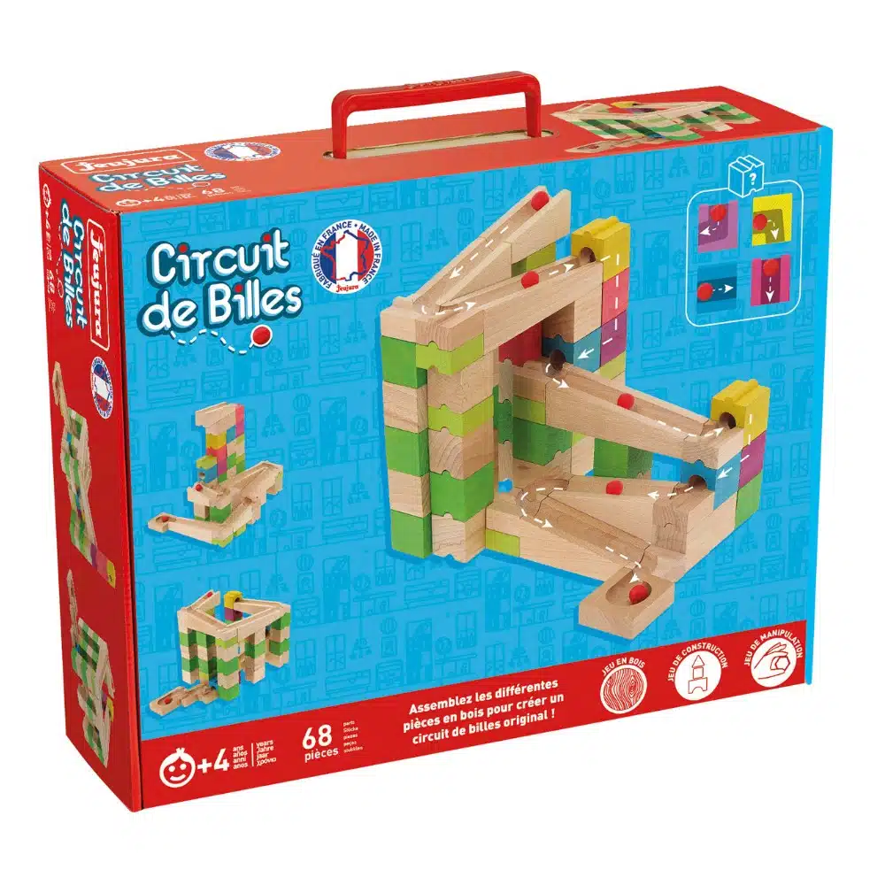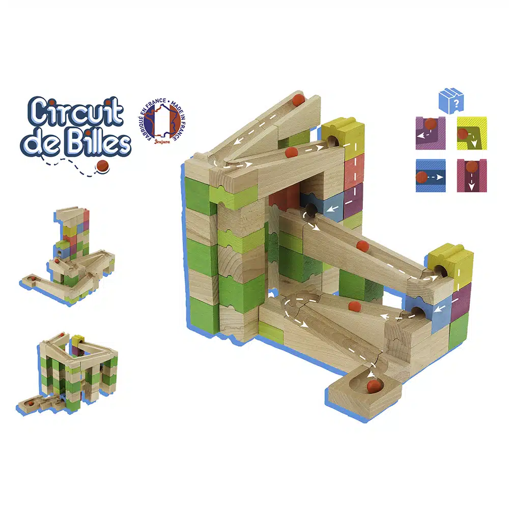 Le grand circuit de billes 68 pièces en bois de la marque Jeujura est un jeu de construction et d’imagination en bois de fabrication française. À partir de 4 ans.