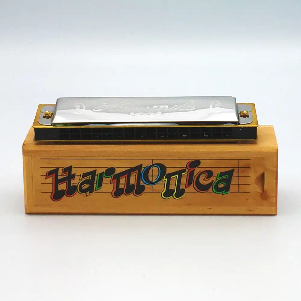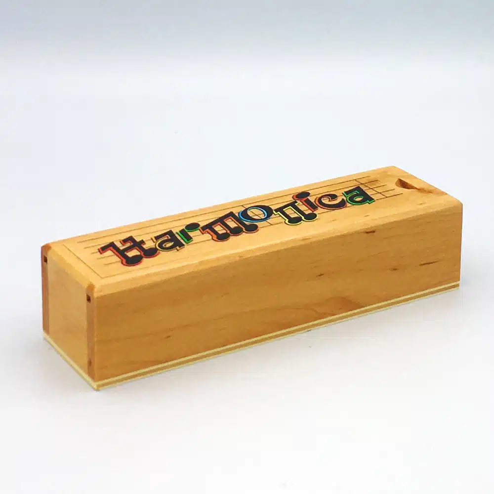Harmonica dans sa boîte en bois fabriquée par nos artisans dans le Jura en France. À partir de 4 ans.