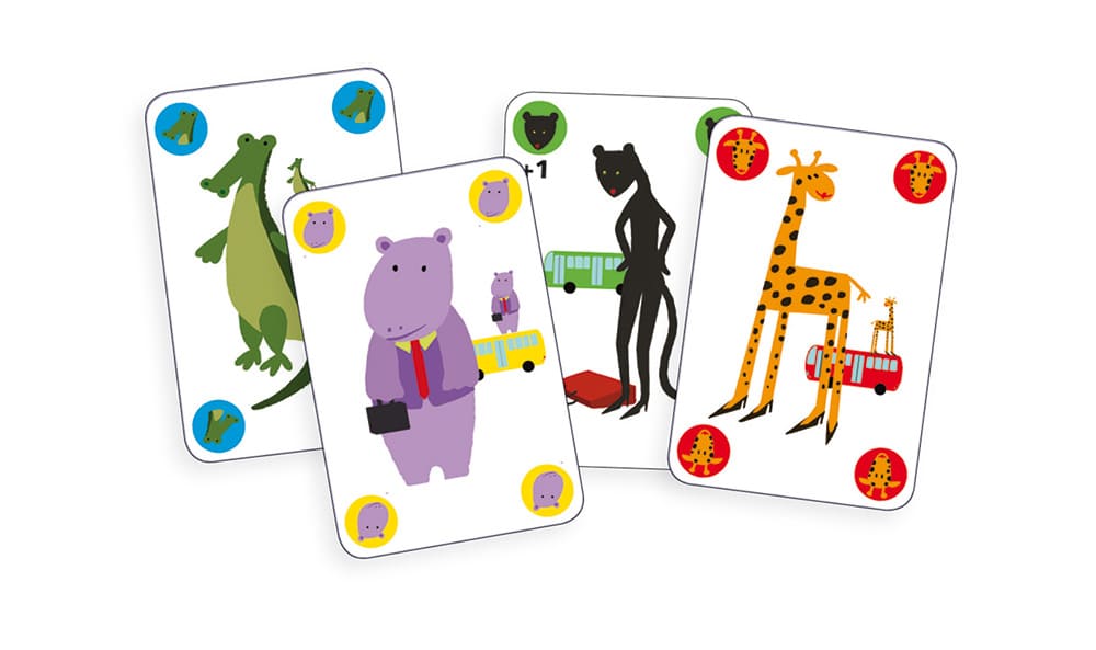 Pour gagner, il faut se débarasser de ses cartes en associant les animaux ou les couleurs de bus. Mais attention, seuls les joueurs les plus rapides sauront éviter le gorille !