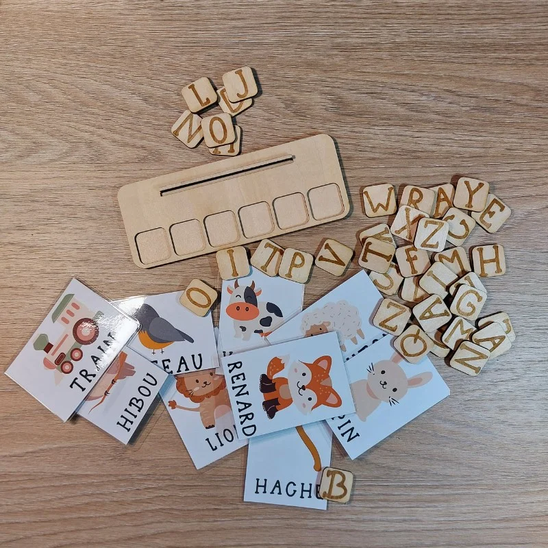 Plongez dans une aventure d’apprentissage ludique avec ce jeu des mots en bois ! Parfait pour les enfants en âge de reconnaître les lettres, ce jeu stimulant aide à développer la maîtrise du langage, la lecture et l’orthographe de manière amusante et interactive. Chaque ensemble comprend une variété de lettres en bois et cartes images colorées, permettant aux enfants de former des mots. Avec sa conception robuste et ses pièces faciles à manipuler, ce jeu des mots en bois est un outil éducatif idéal pour apprendre en s’amusant. Offrez à votre enfant une expérience d’apprentissage enrichissante et amusante dès aujourd’hui…